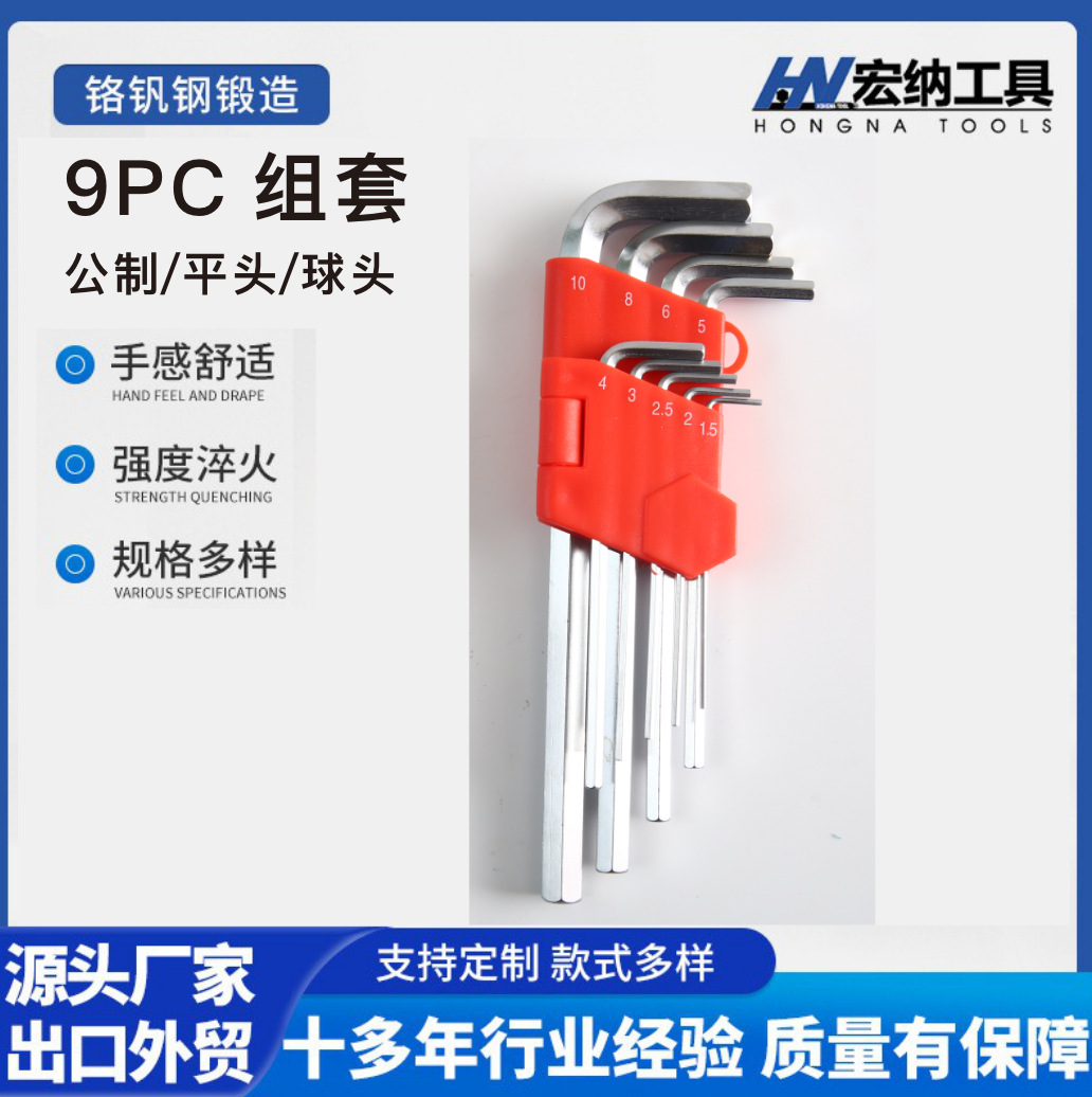 9개 세트 L자형 중간 길이 육각 소켓 렌치 크롬 도금 무광택 플랫 헤드 볼 헤드 육각 드라이버 하드웨어 도구스토어 가기
