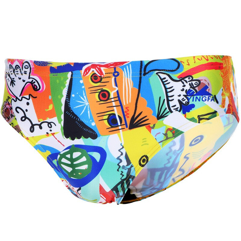 Yingfa 새로운 수영 트렁크 남성용 꽉 삼각형 레이싱 훈련 전문 수영 트렁크 디지털 인쇄 수영 트렁크 속건