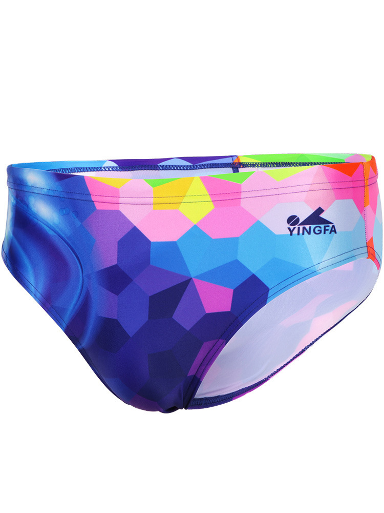 Yingfa 새로운 수영 트렁크 남성용 꽉 삼각형 레이싱 훈련 전문 수영 트렁크 디지털 인쇄 수영 트렁크 속건스토어 가기