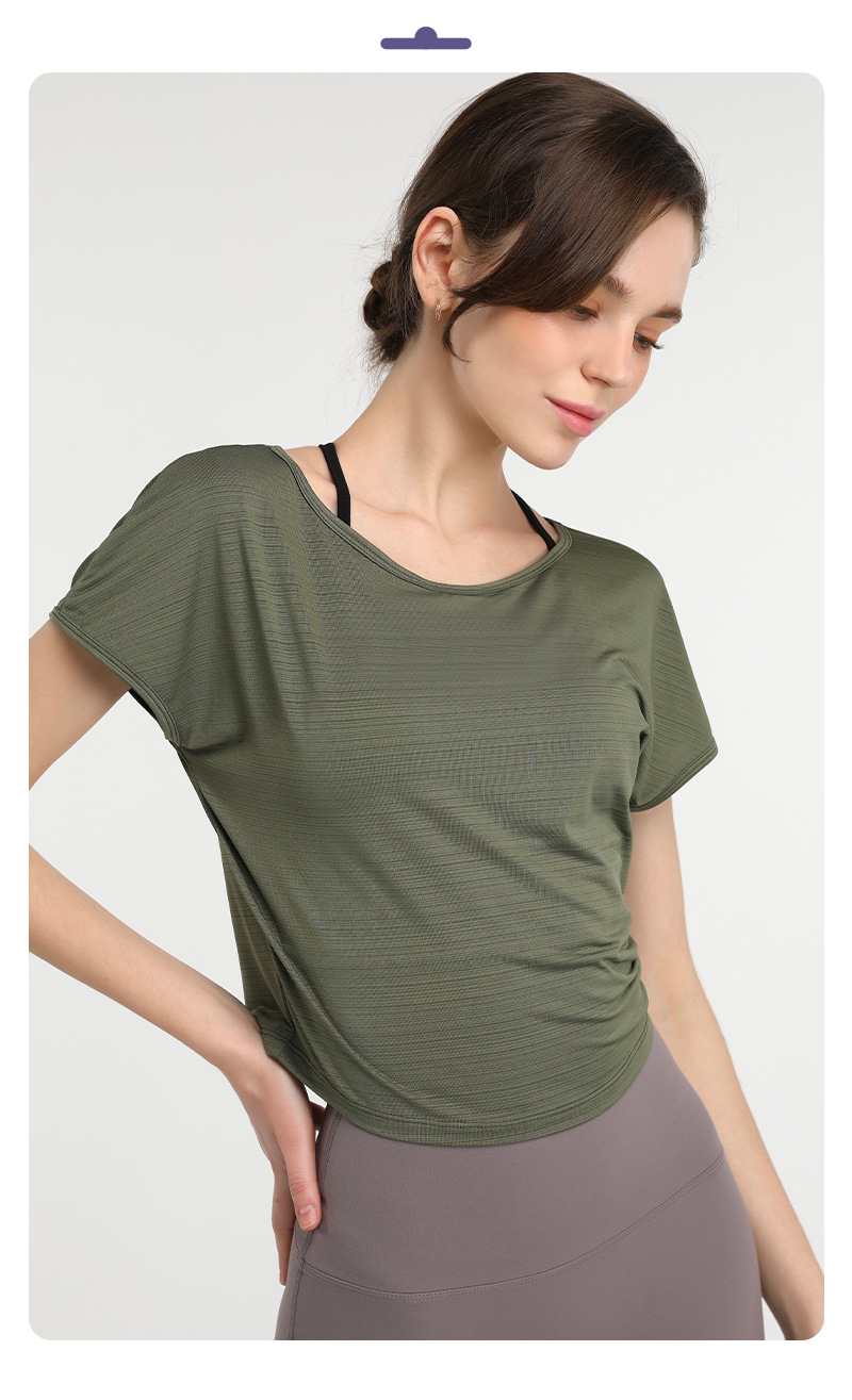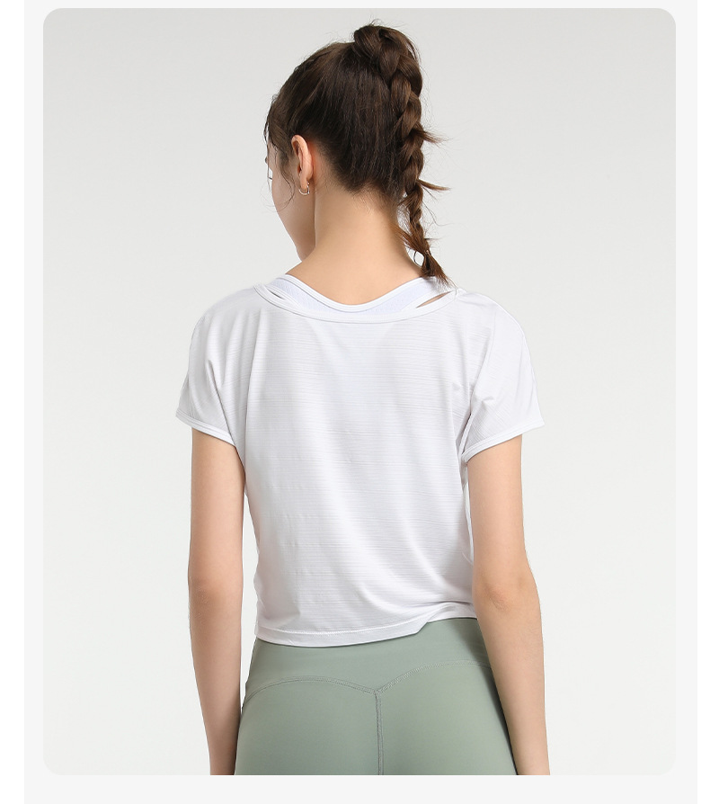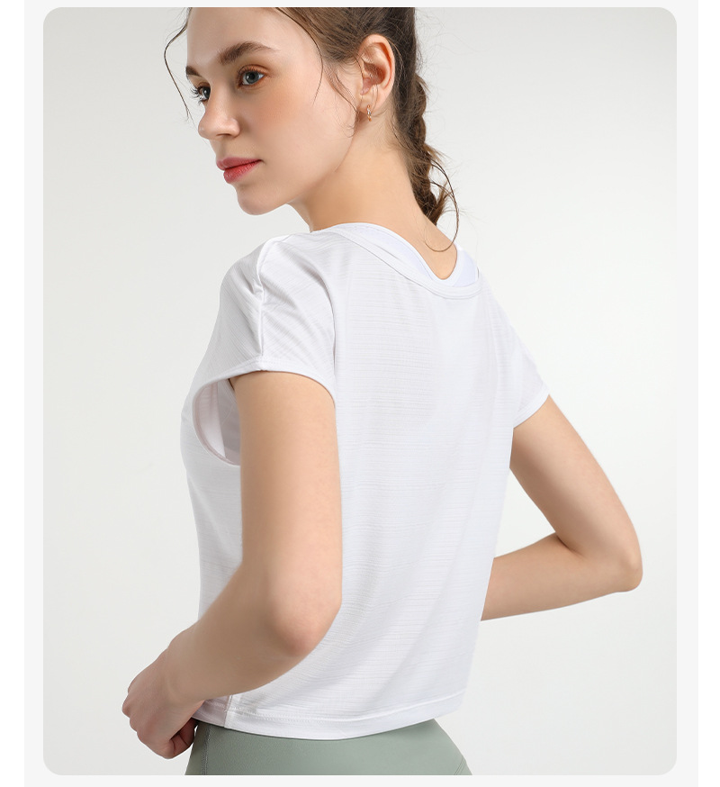 유럽과 미국 패션 속건 요가 세트 스포츠 여성을위한 반팔 기질 최고 댄스 훈련 탄성 피트니스 세트 실행
