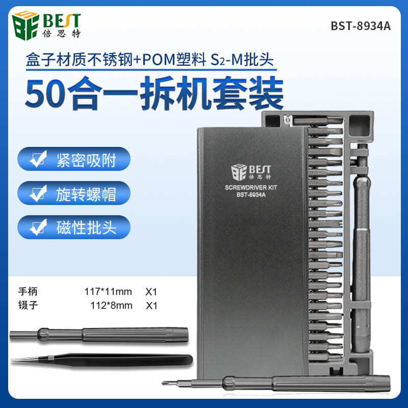 최고의 드라이버 8934A 고정밀 50-in -1 휴대 전화 수리 S2 강철 분해 도구 기장 나사 세트스토어 가기