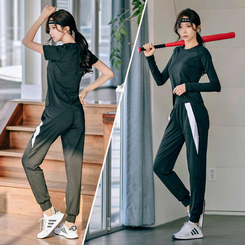 체육관 스포츠 세트 여성용 긴 반팔 쓰리 피스 세트 느슨한 프로 스포츠 러닝 의류 봄과 여름 패션 요가 의류스토어 가기