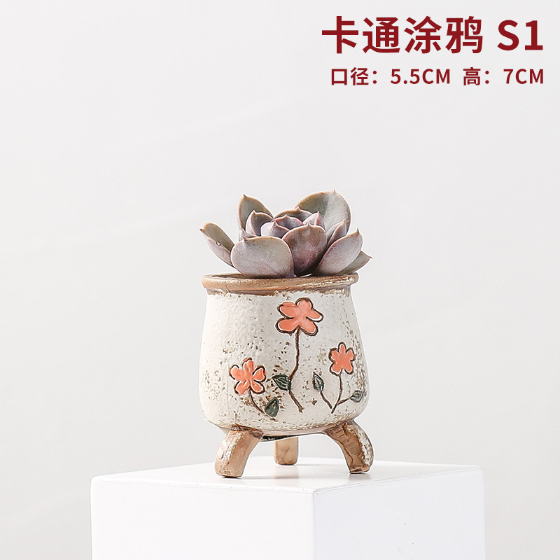 크로스보더 다육식물 화분, 손으로 만든 도자기 화분, 통기성 좋은 다육식물 화분, 손으로 그린 엄지손가락 화분, 공장 직판, 창의적인 화분