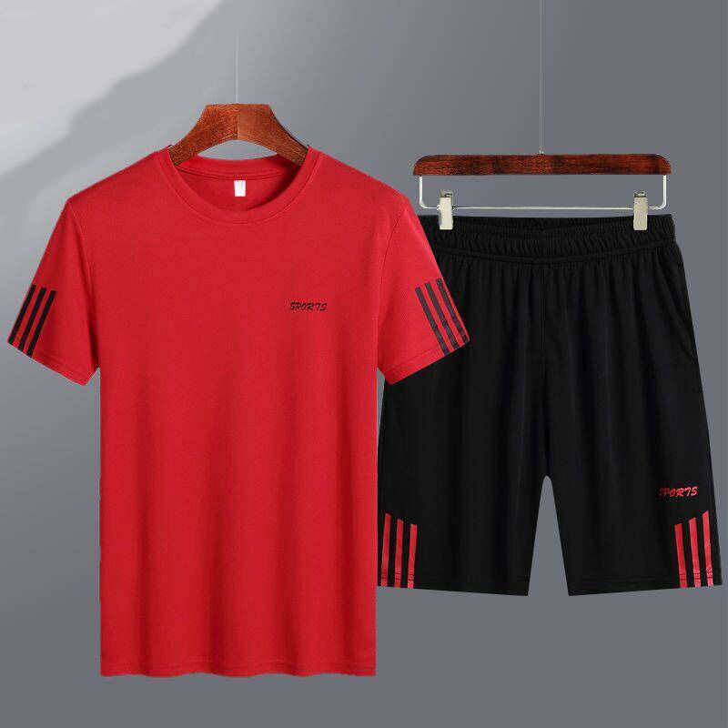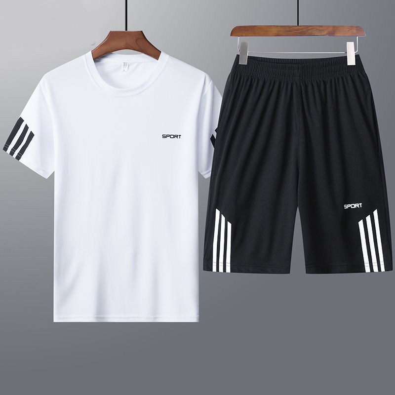 남성용 크로스보더 여름 스포츠 슈트, 반팔 반바지 투피스 세트, 캐주얼 러닝 농구 통기성 속건 탑, 드롭쉬핑스토어 가기