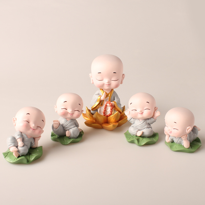 새로운 어린 시절 스님 자동차 액세서리 작은 장식품 흔들리는 머리 사원 경치 좋은 지역 자동차 센터 콘솔 장식 데스크탑 입구스토어 가기