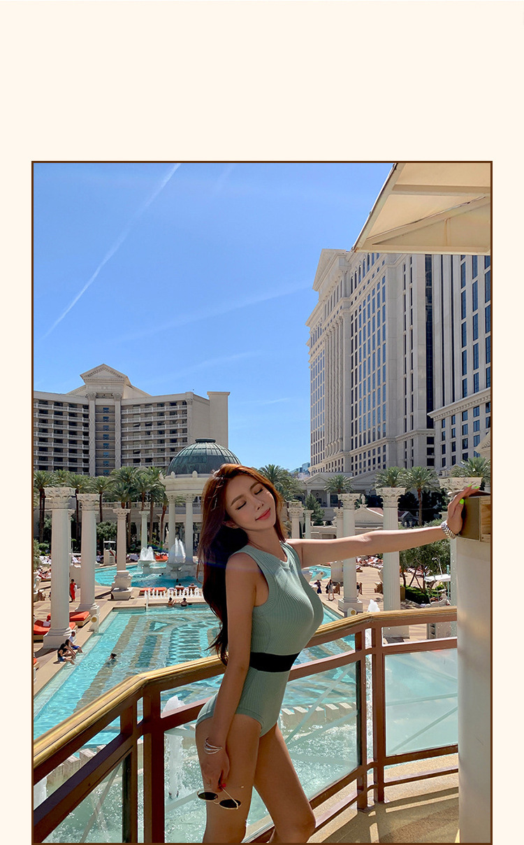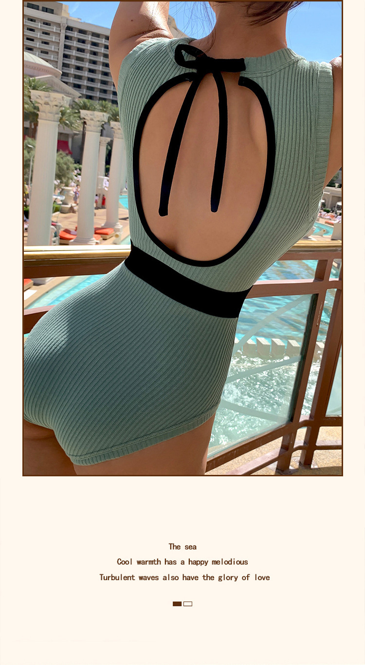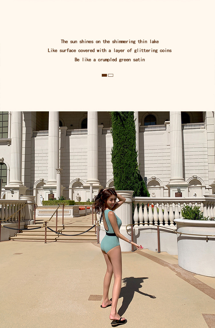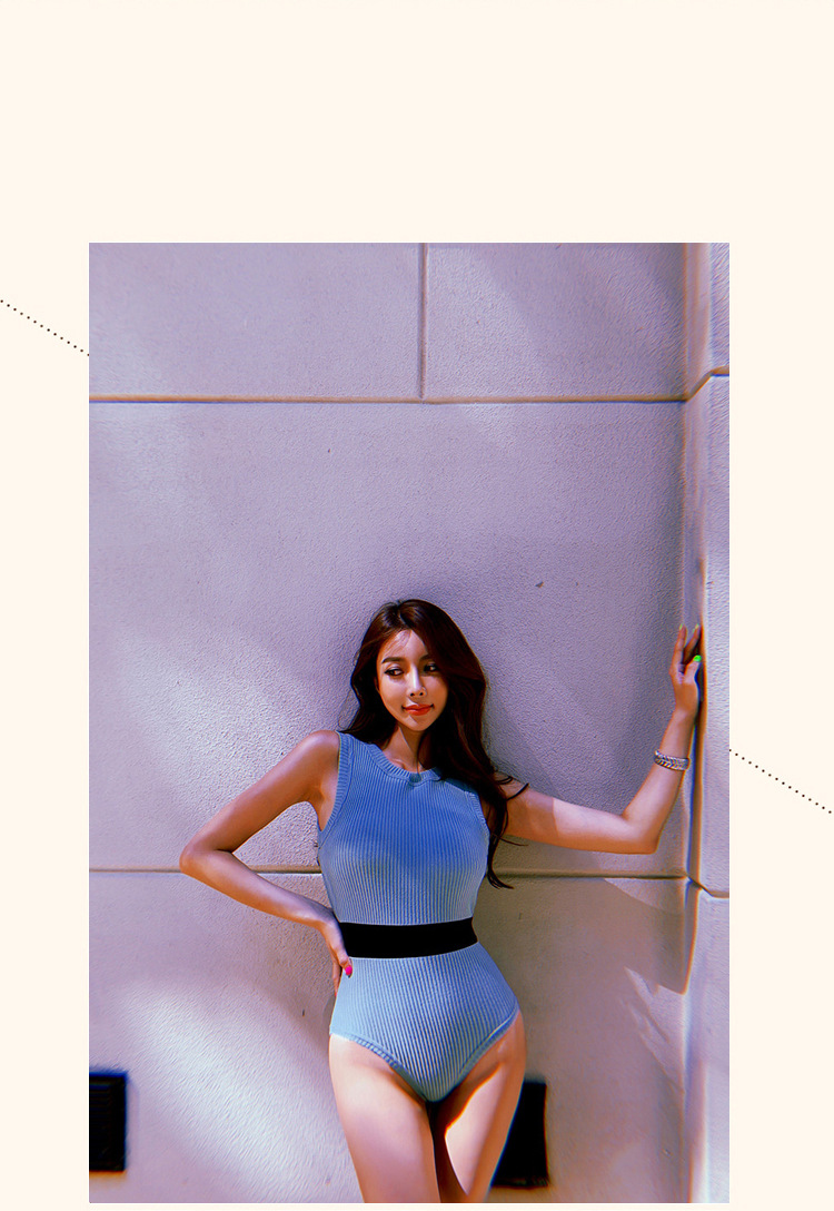 공장 수영복 한국 in 스타일 블루 원피스 하이 칼라 수영복 여성의 섹시 슬림 배꼽 커버 보수적 인 온천 수영복