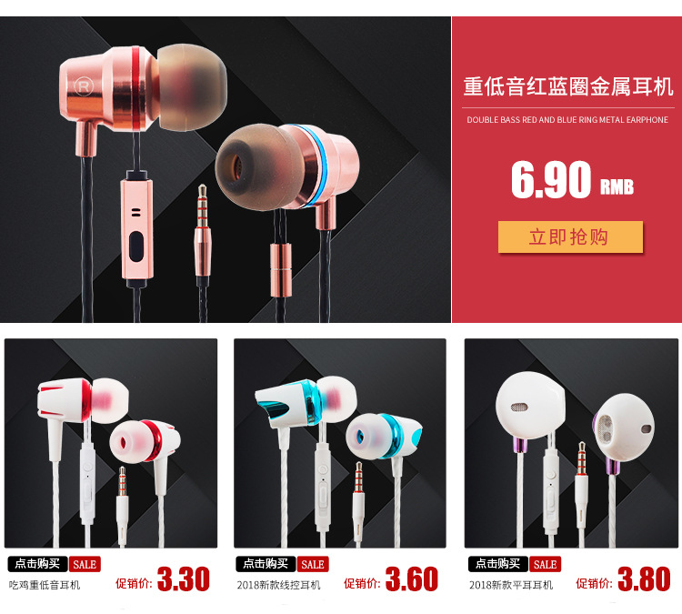 공장 직접 공급 3.5mm 인라인 헤드폰 인 이어 서브 우퍼 헤드폰 저렴한 귀가있는 휴대 전화 라디오스토어 가기