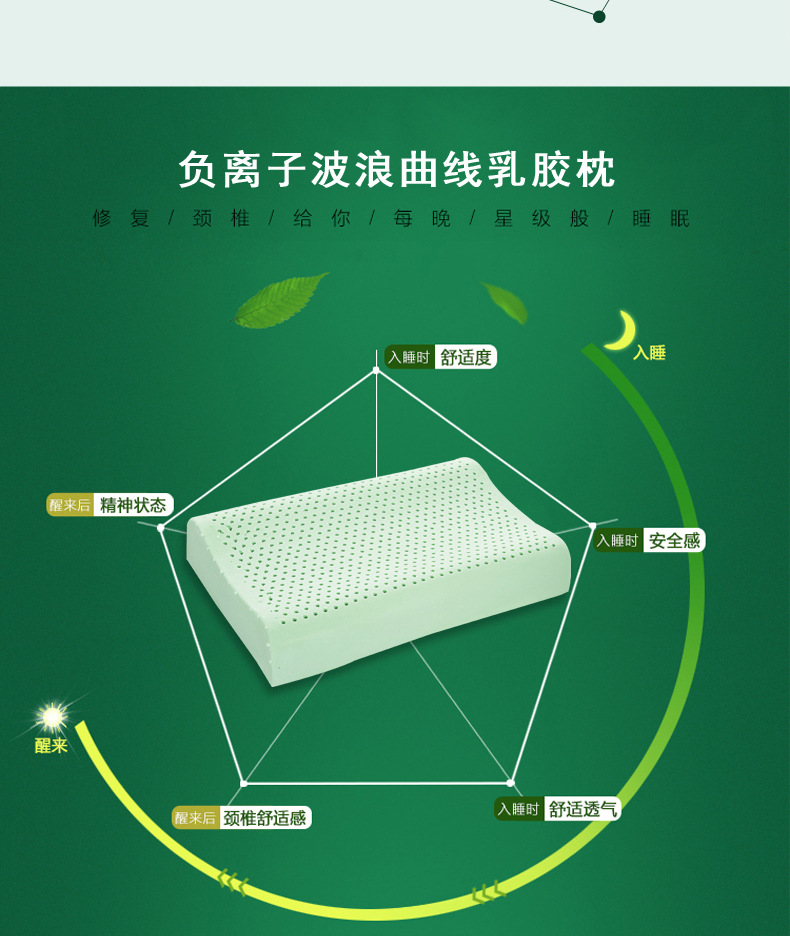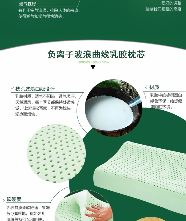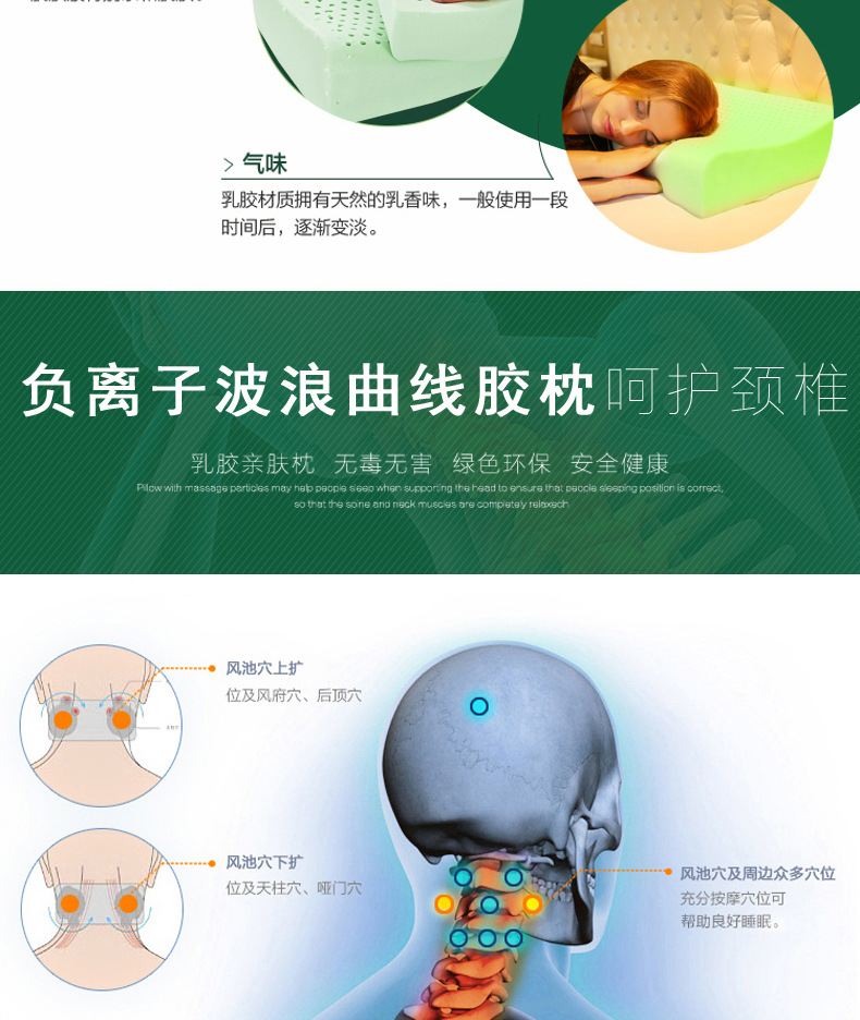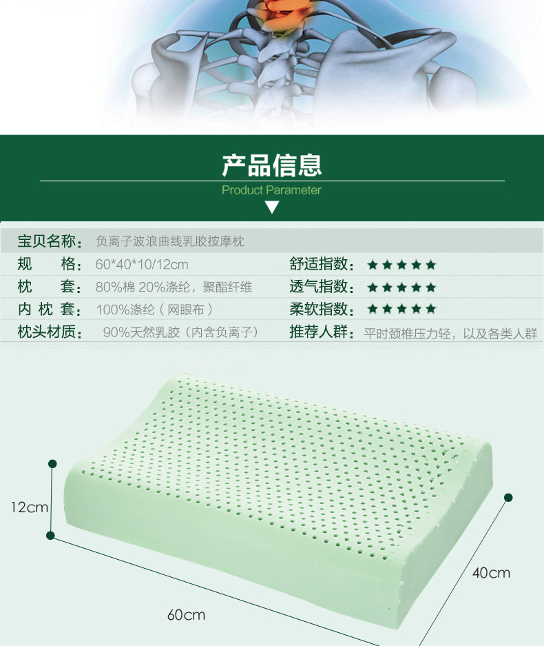 음이온 라텍스 베개, 싱글 목 보호 마사지 베개, 높낮이 조절 베개심, 베개, 해외 도매, 진드기 방지 수면 웨이브형 경추 베개스토어 가기