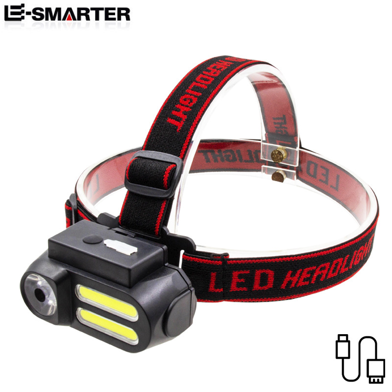 공장 도매 USB 충전식 전조등 2COB + XPE 실외 비상 전조등 18650 다기능 조명