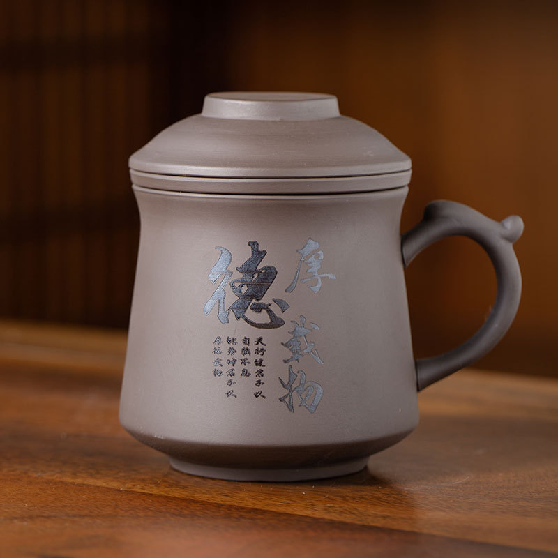 비즈니스 선물 보라색 점토 차 세트 세라믹 물컵 기업 맞춤형 로고 선물 상자 사무실 컵 회의 컵 찻잔