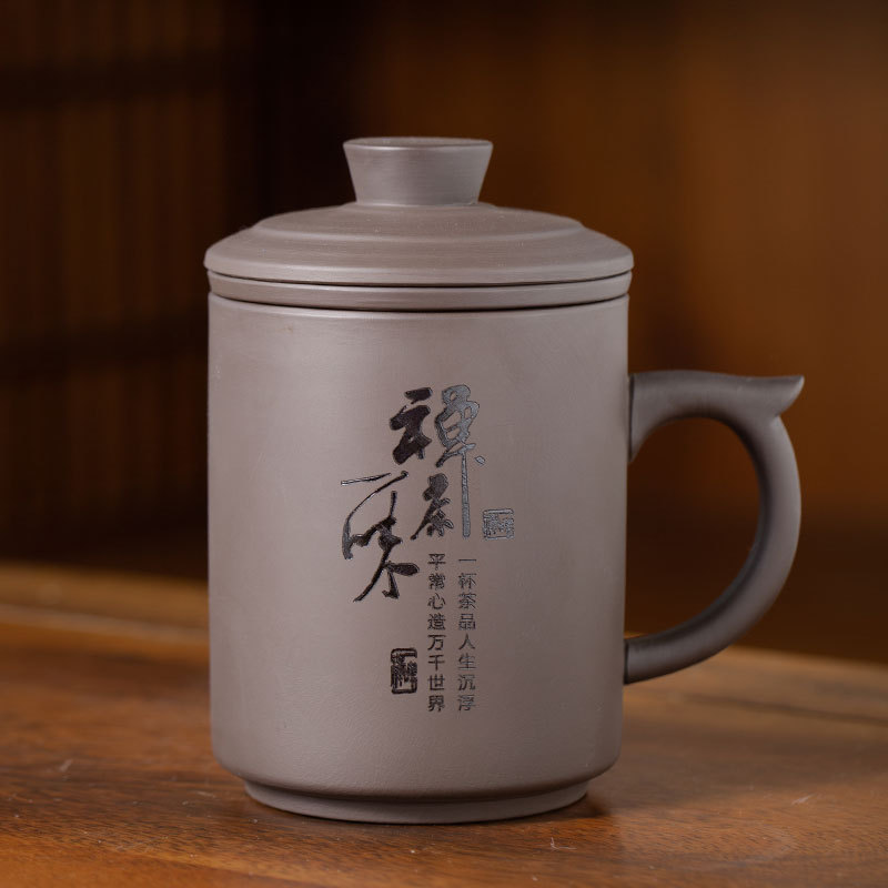 비즈니스 선물 보라색 점토 차 세트 세라믹 물컵 기업 맞춤형 로고 선물 상자 사무실 컵 회의 컵 찻잔스토어 가기