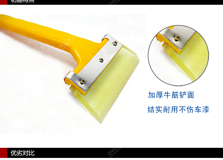1、此款牛筋铲头除雪铲/冰雪铲,牛筋铲头,既能对车玻璃清理,也能对车身清理,基本不会对车身产生划痕。