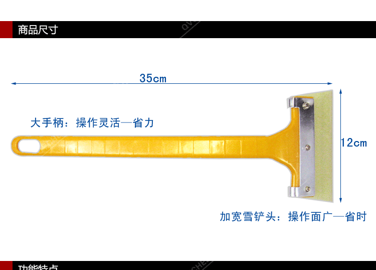 本品牛筋铲头除雪铲/冰雪铲,高强度塑料结构,防滑黄色塑料手柄,不锈钢材质固定,整体牢固。铲板采用高品质牛筋材料,软硬适中,既能对车玻璃清理,也能对车身清理,基本不会对车身产生划痕,使用简便,清理方便。
