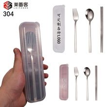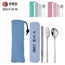 跨境便携餐具 304不锈钢勺子叉子筷子三件套活动礼品赠送定制logo