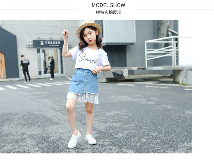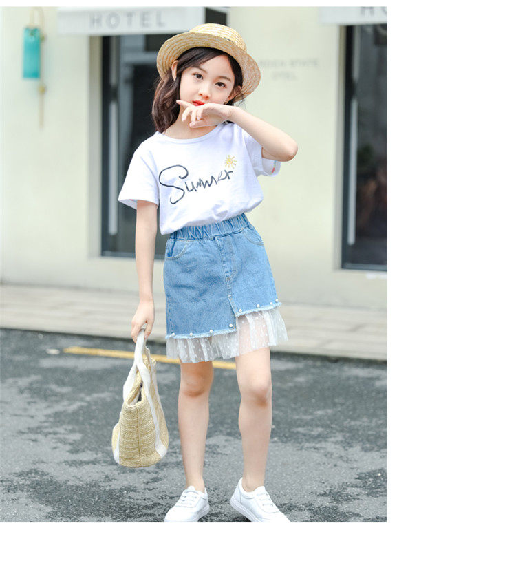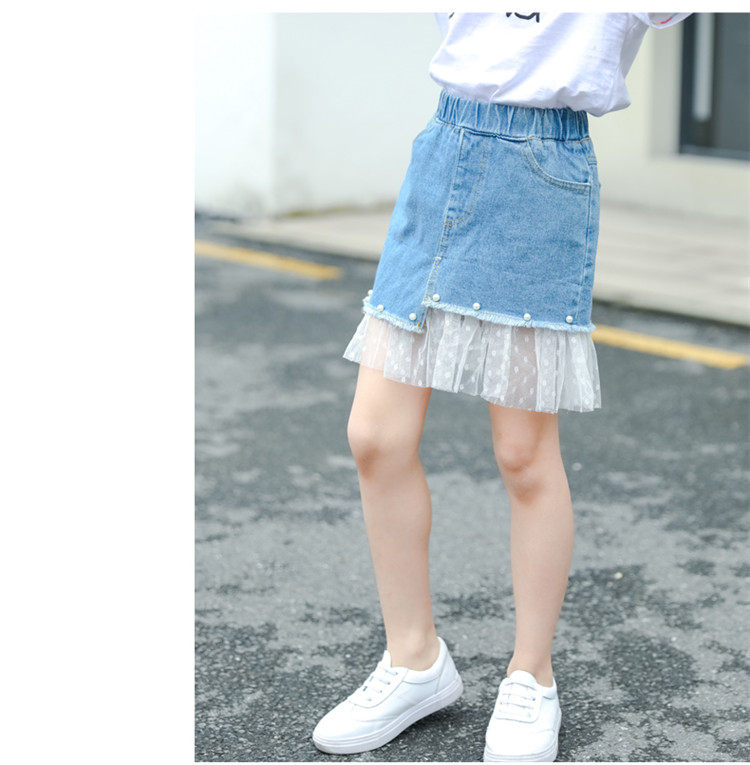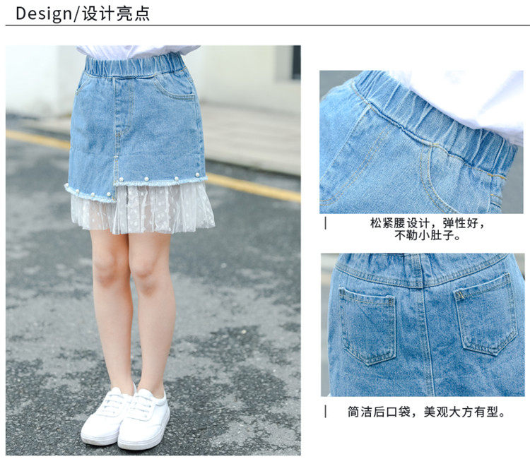 여아 데님 미니스커트 신상 여름옷 아동용 스타일리쉬 스커트 어린 소녀들을 위한 패셔너블한 진주 스커트 해외배송