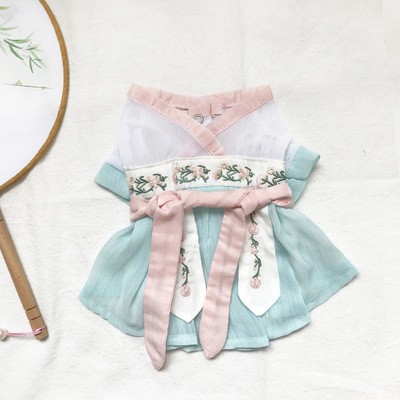 인터넷 연예인 애완 동물 Hanfu 작은 개 여름 착용 얇은 테디 포메리 개 옷 고양이 옷 중국 스타일 골동품