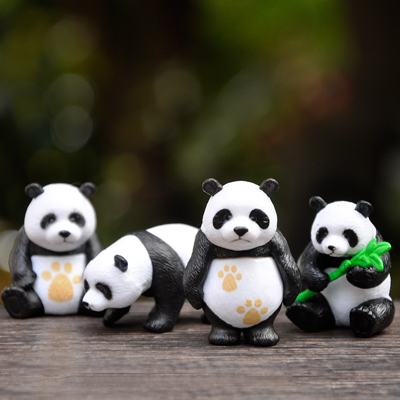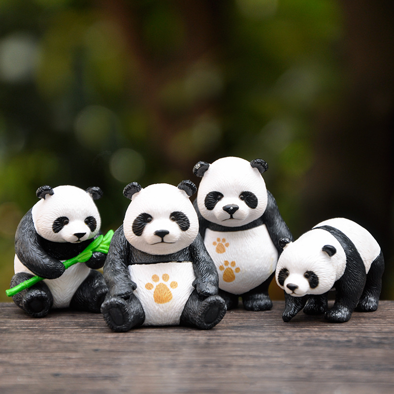 귀여운 자이언트 팬더 대나무 인형 가족 고양이 곰 가족 단단한 장난감 귀여운 움직이는 장식품