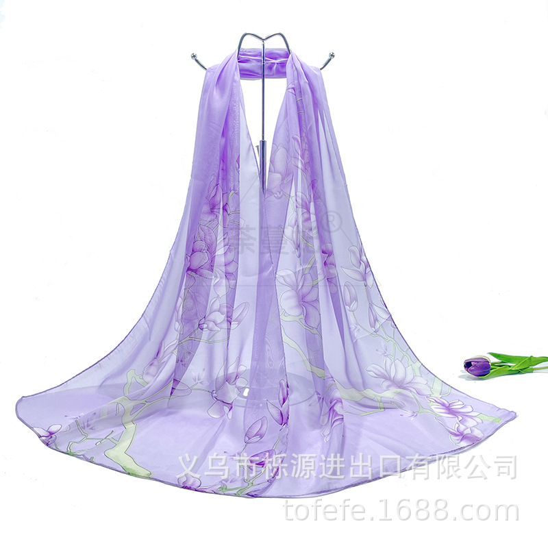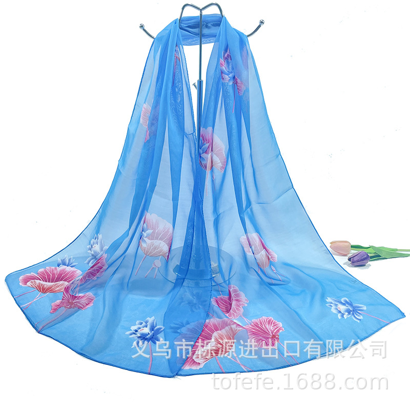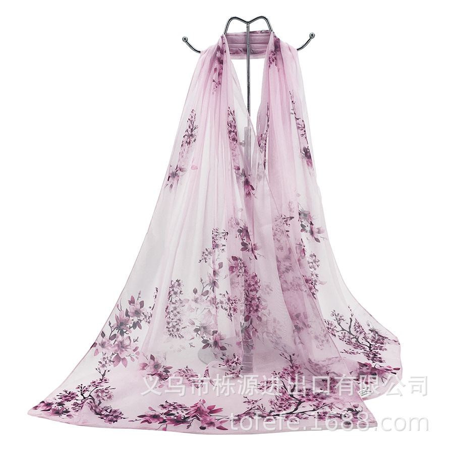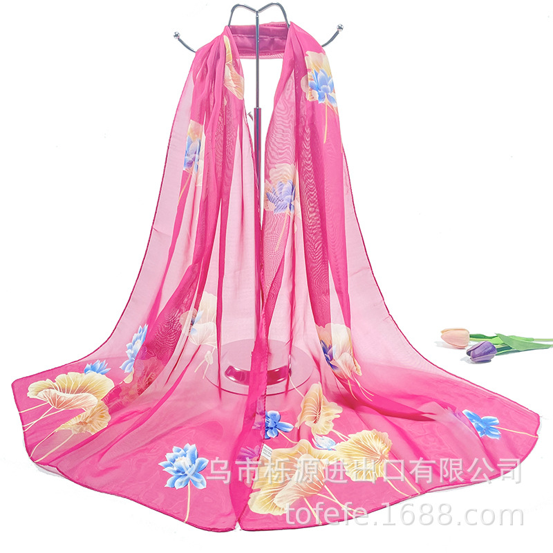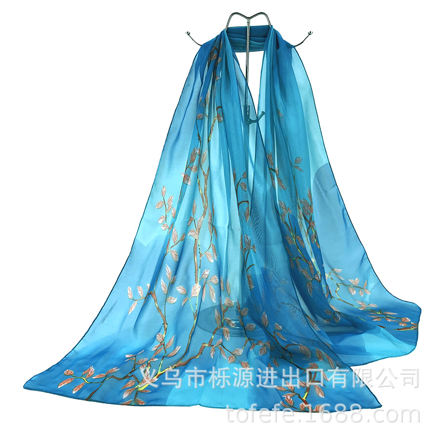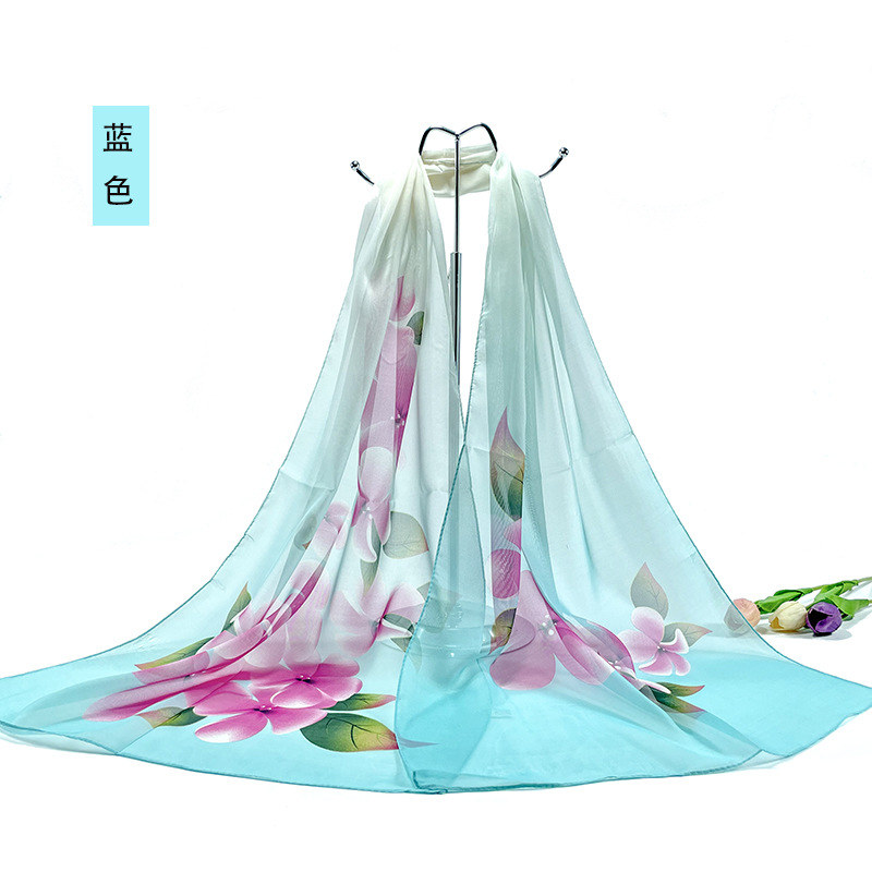 실크 스카프 여성 봄과 가을 선 스크린 쉬폰 인쇄 실크 스카프 롱 비치 타월 스톨 스카프 도매 선물 스카프스토어 가기