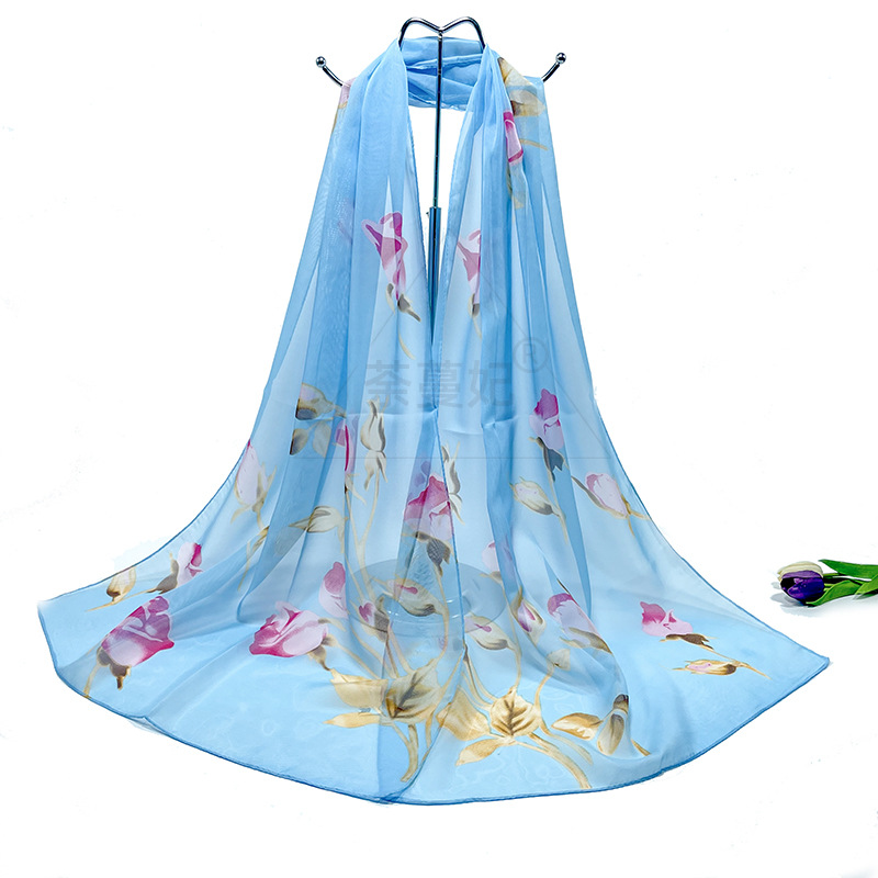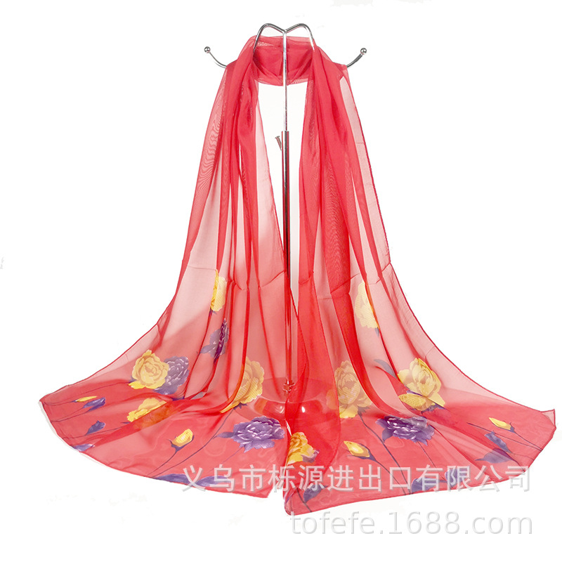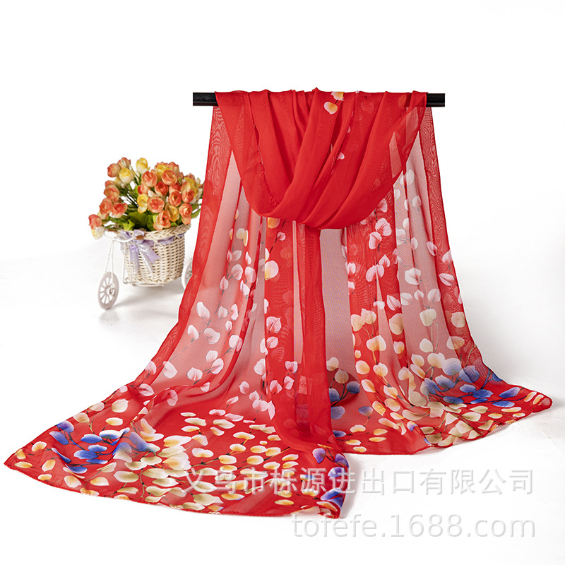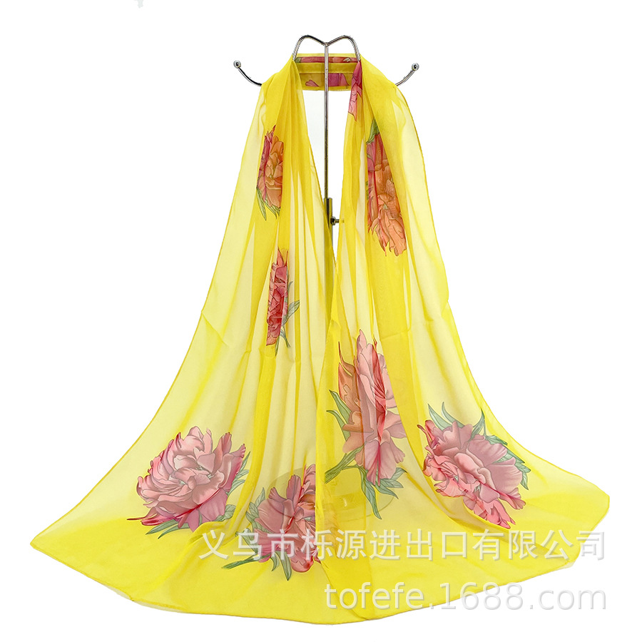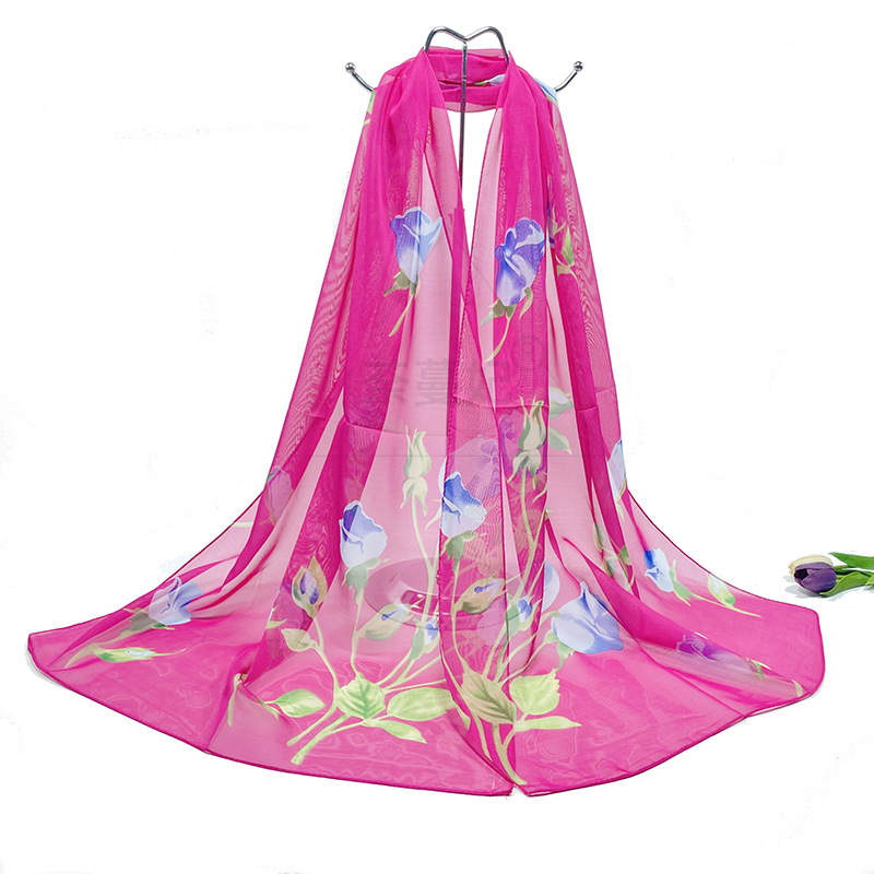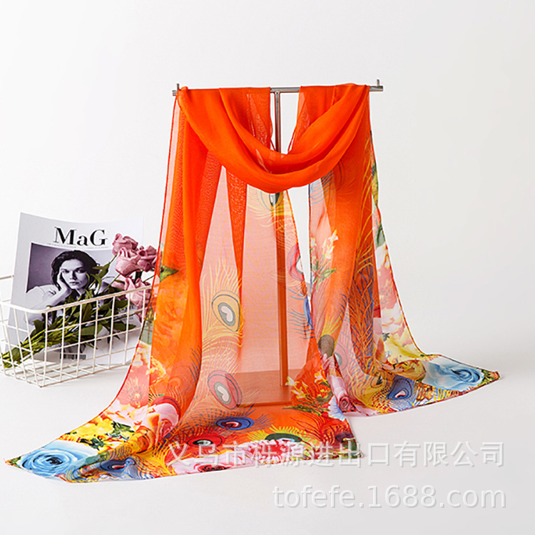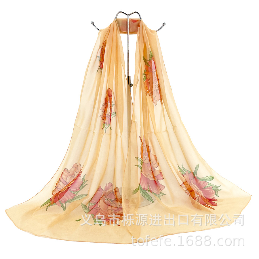 실크 스카프 여성 봄과 가을 선 스크린 쉬폰 인쇄 실크 스카프 롱 비치 타월 스톨 스카프 도매 선물 스카프스토어 가기