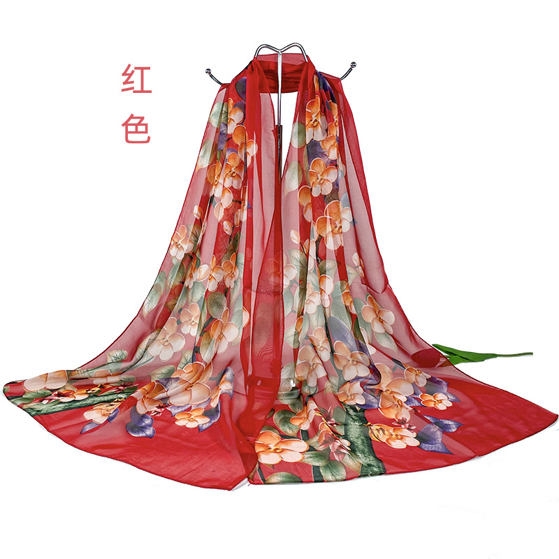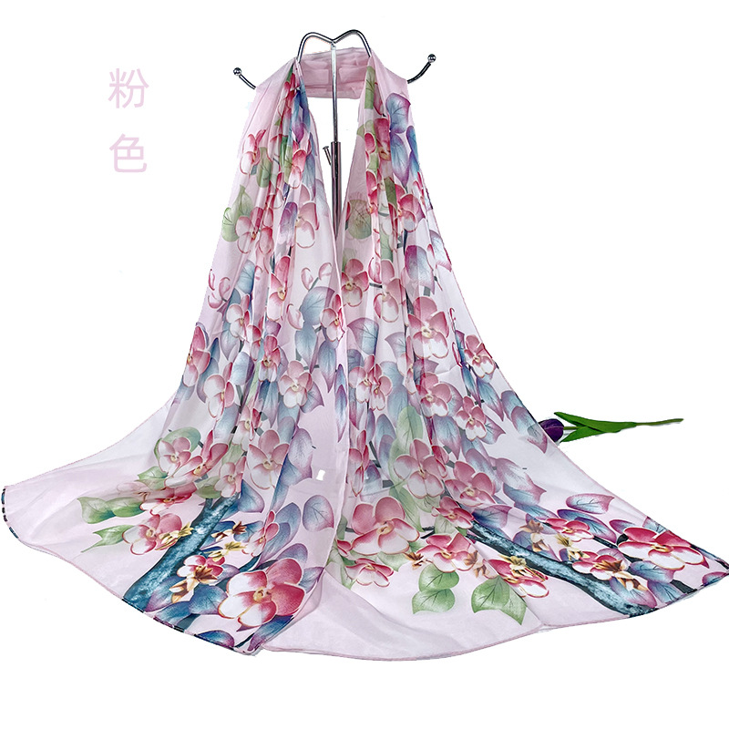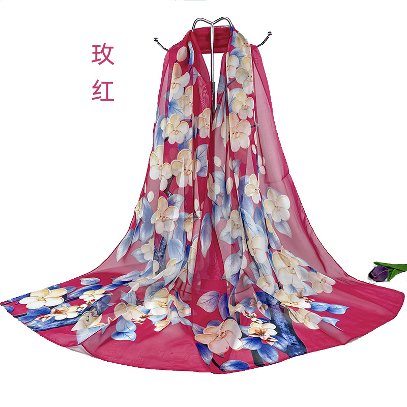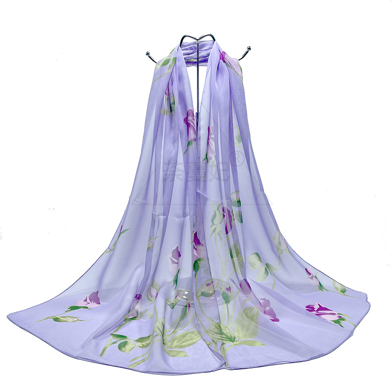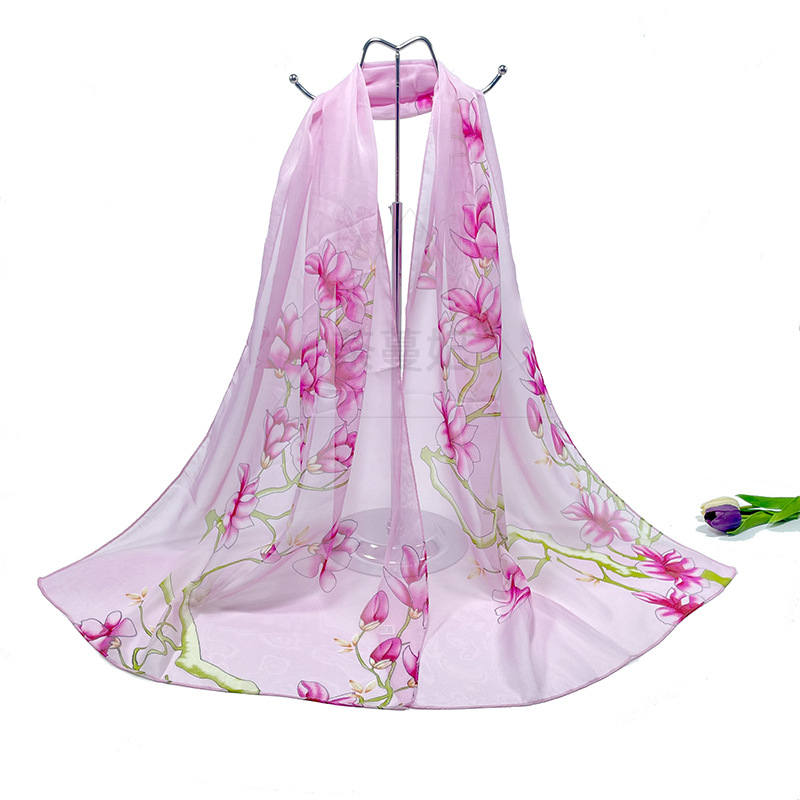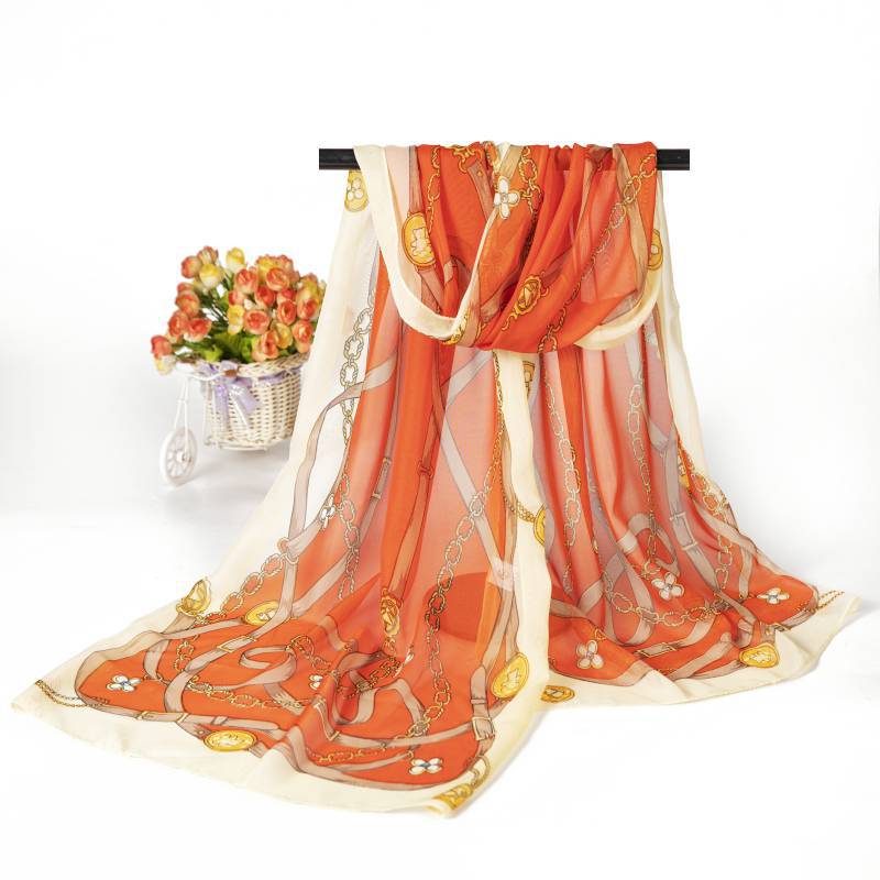 실크 스카프 여성 봄과 가을 선 스크린 쉬폰 인쇄 실크 스카프 롱 비치 타월 스톨 스카프 도매 선물 스카프
