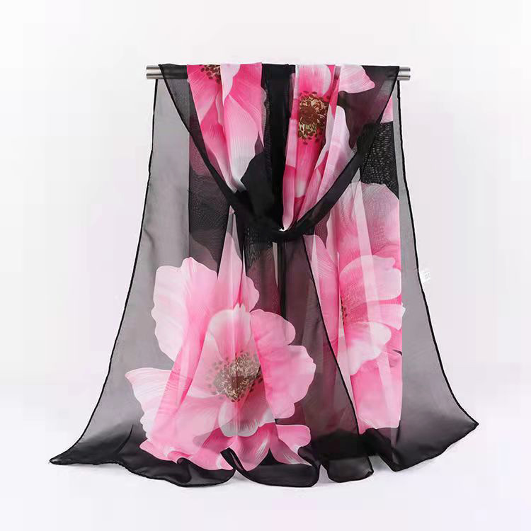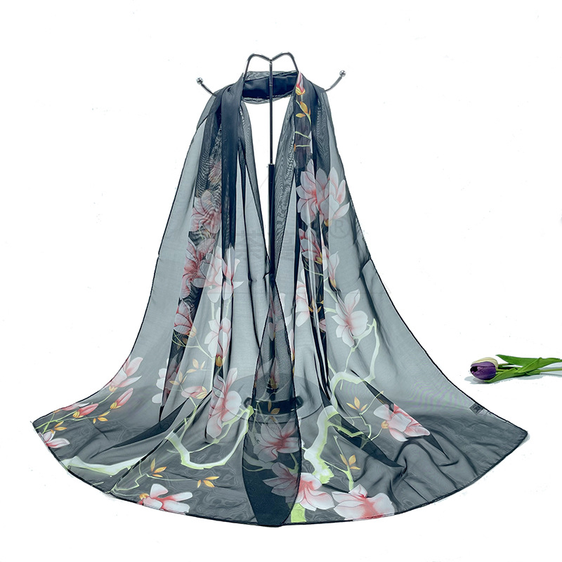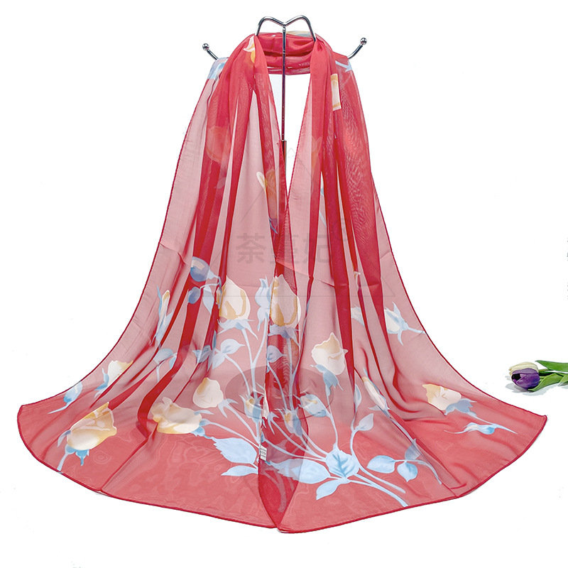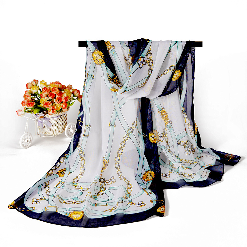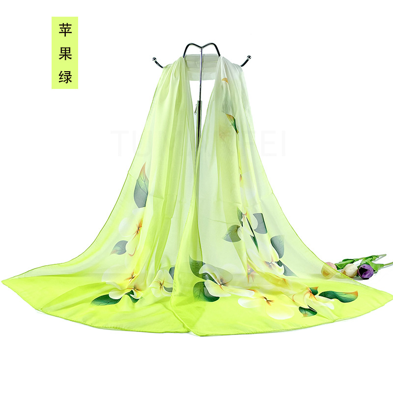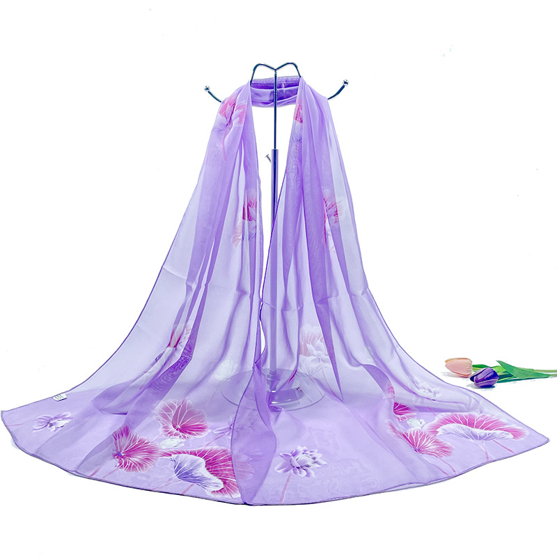 실크 스카프 여성 봄과 가을 선 스크린 쉬폰 인쇄 실크 스카프 롱 비치 타월 스톨 스카프 도매 선물 스카프