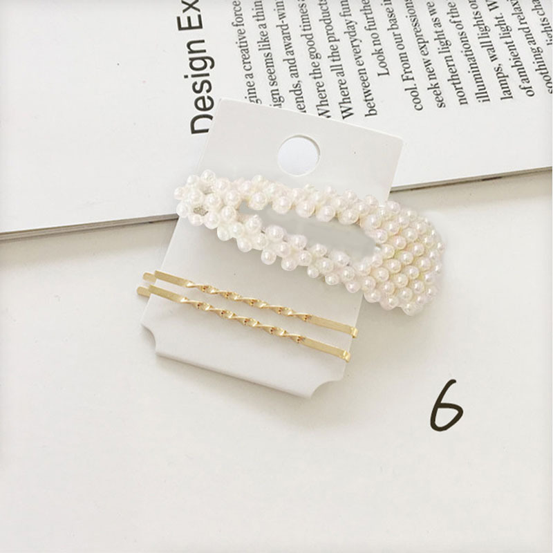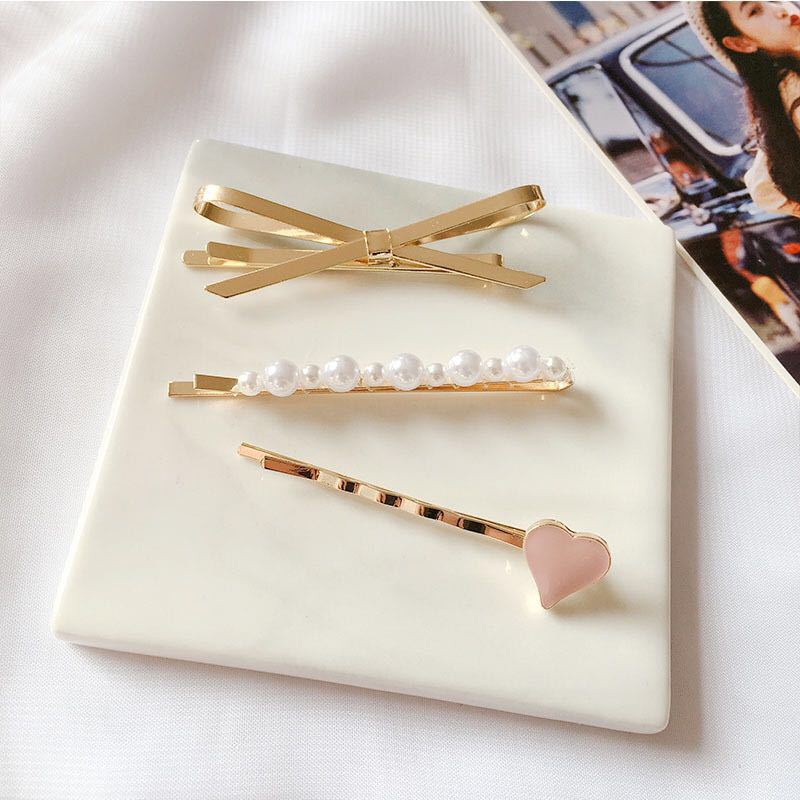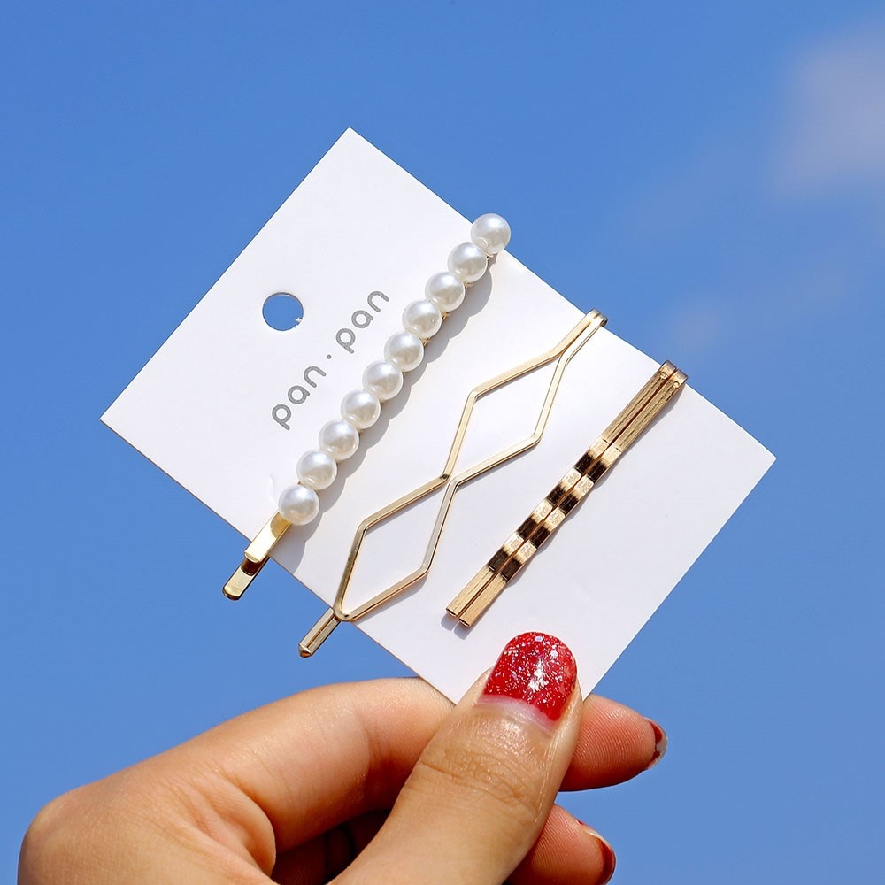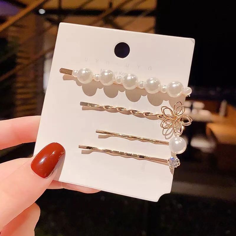 한국 스타일 인터넷 연예인 진주 머리핀 세트, 달콤한 인스 스타일 메탈 여학생용 헤어핀, 사이드 클립, 앞머리 장식