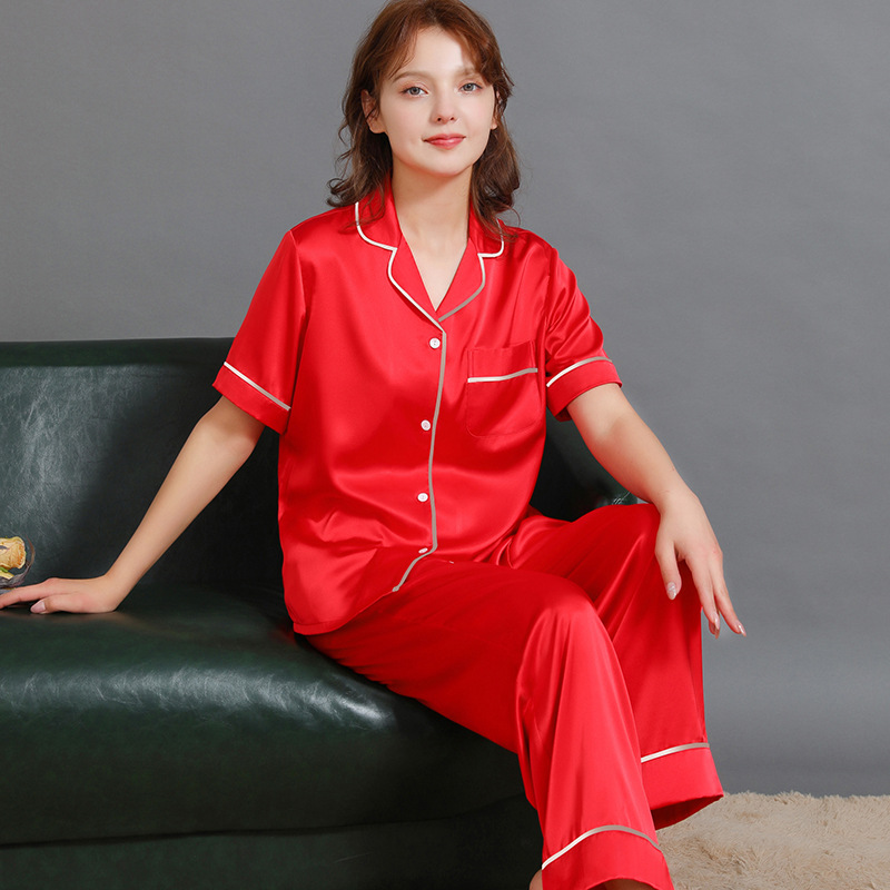 새로운 봄과 가을 실크 커플 잠옷 여자의 가을 얼음 실크 남자의 잠옷 가정 옷 반소매 플러스 사이즈 세트스토어 가기