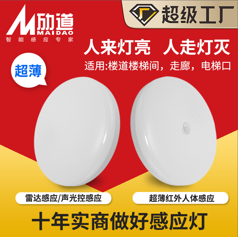 厂家直销人体红外智能感应吸顶灯 主要用于走廊 过道 地下车库智能照明,节能高效!