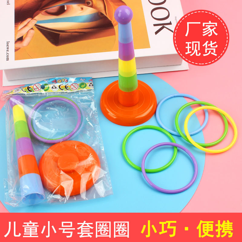 也是节假日集体活动、趣味比赛的用品!打开包装后先教宝宝辨认七彩套叠塔和套圈的颜色,然后按照由大到小的正确顺序套叠把柱子组装起来,然后就可以玩套圈游戏了。