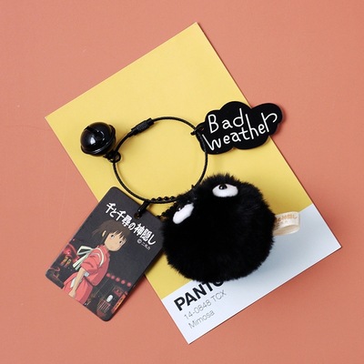 센과 치히로 열쇠 고리 여성 귀여운 만화 플러시 검은 연탄 학교 가방 펜던트 Longxiang 가방 펜던트