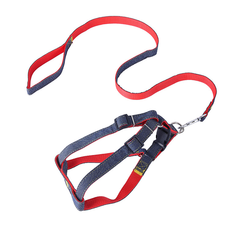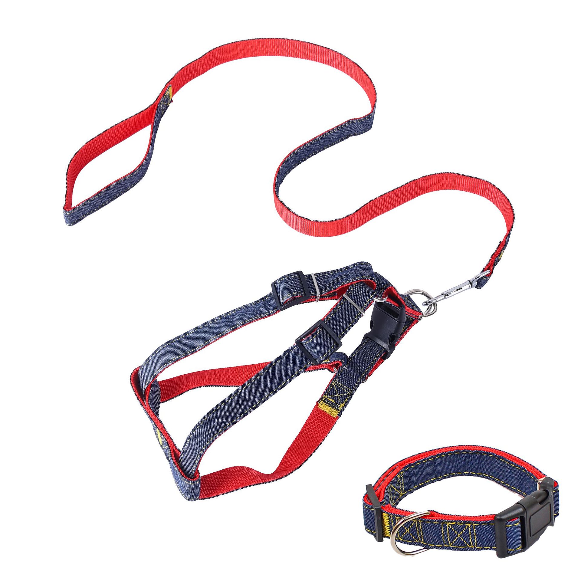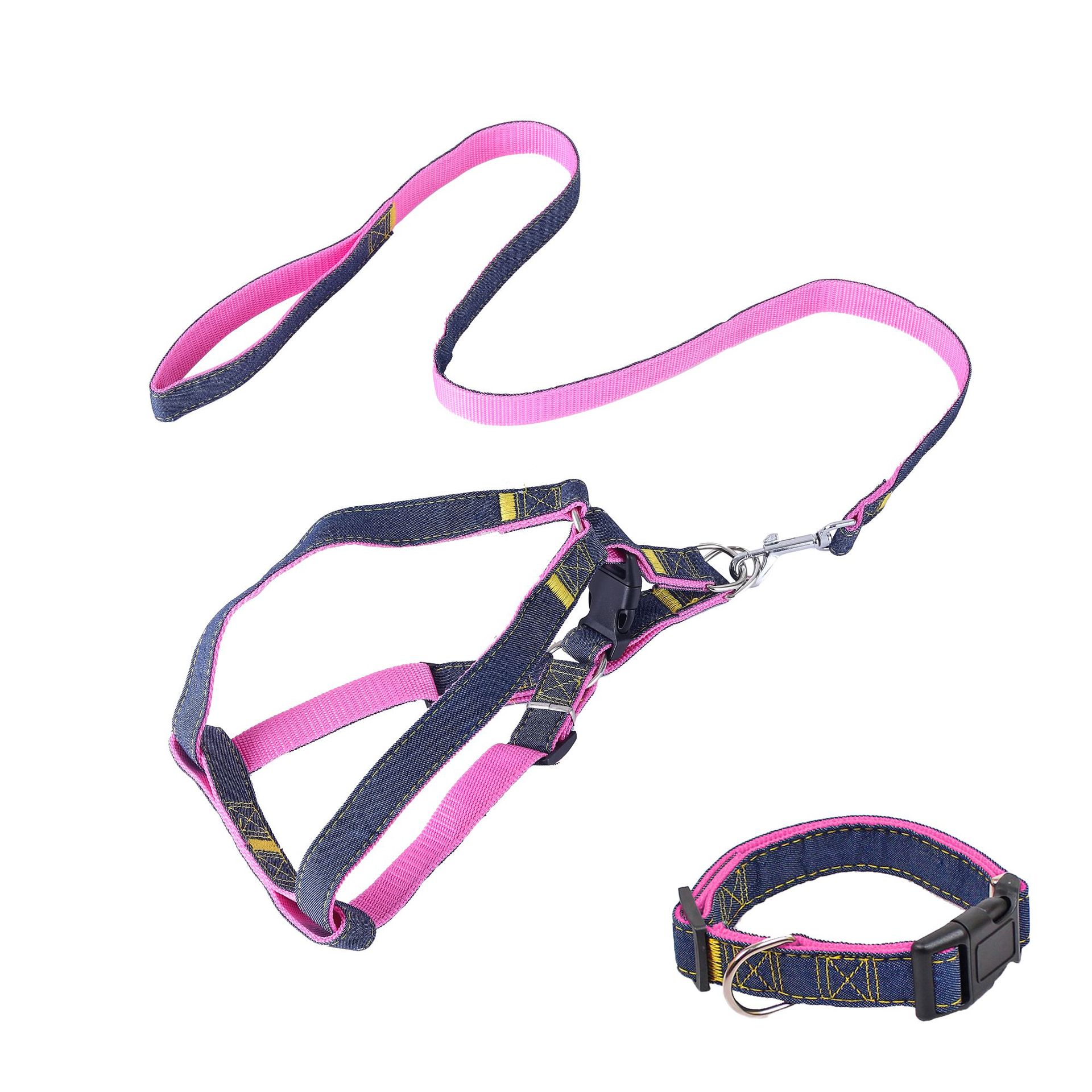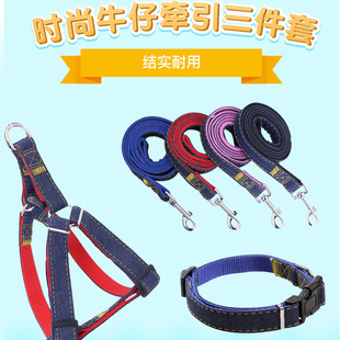 现货批发宠物狗绳 加厚耐磨抗咬 牛仔缝布胸背带