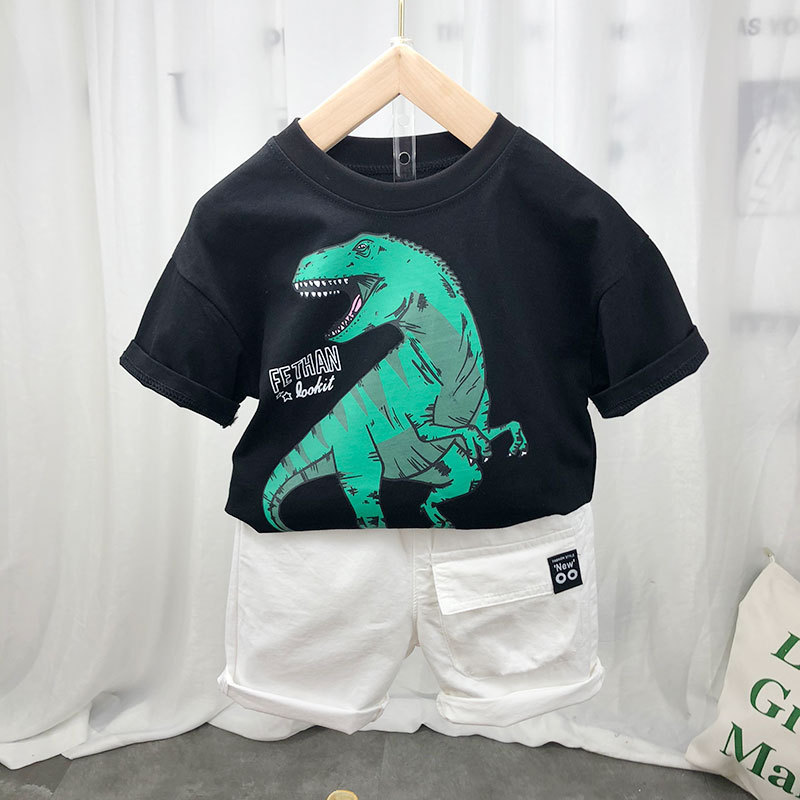 • F00026 검은 공룡 티셔츠 + 78079 녹색 반바지
