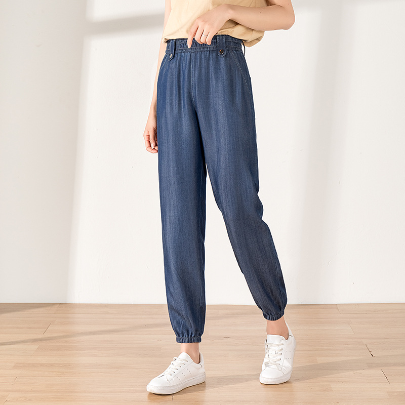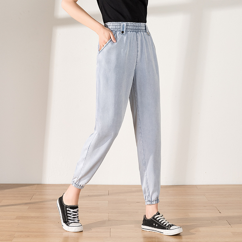 2023 여름 새 여성용 텐셀 하렘 바지 신축성 높은 허리 얇은 다리 느슨한 발목 길이 청바지 20333