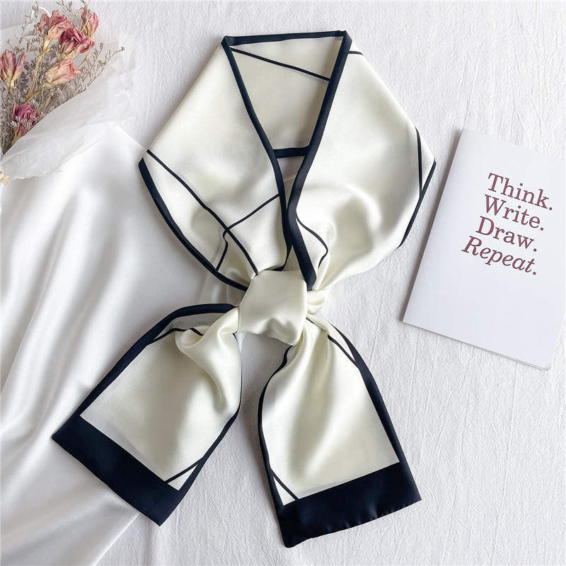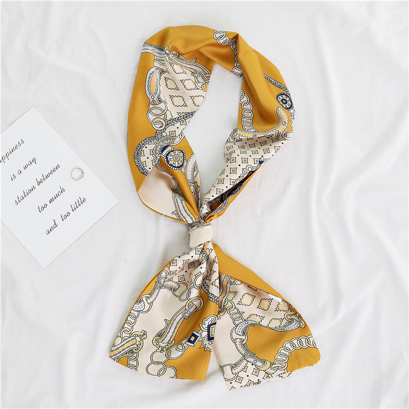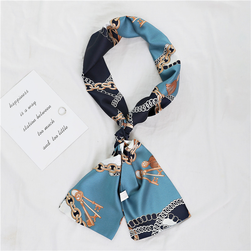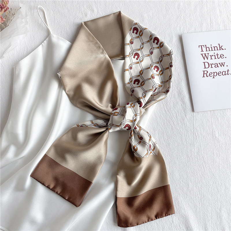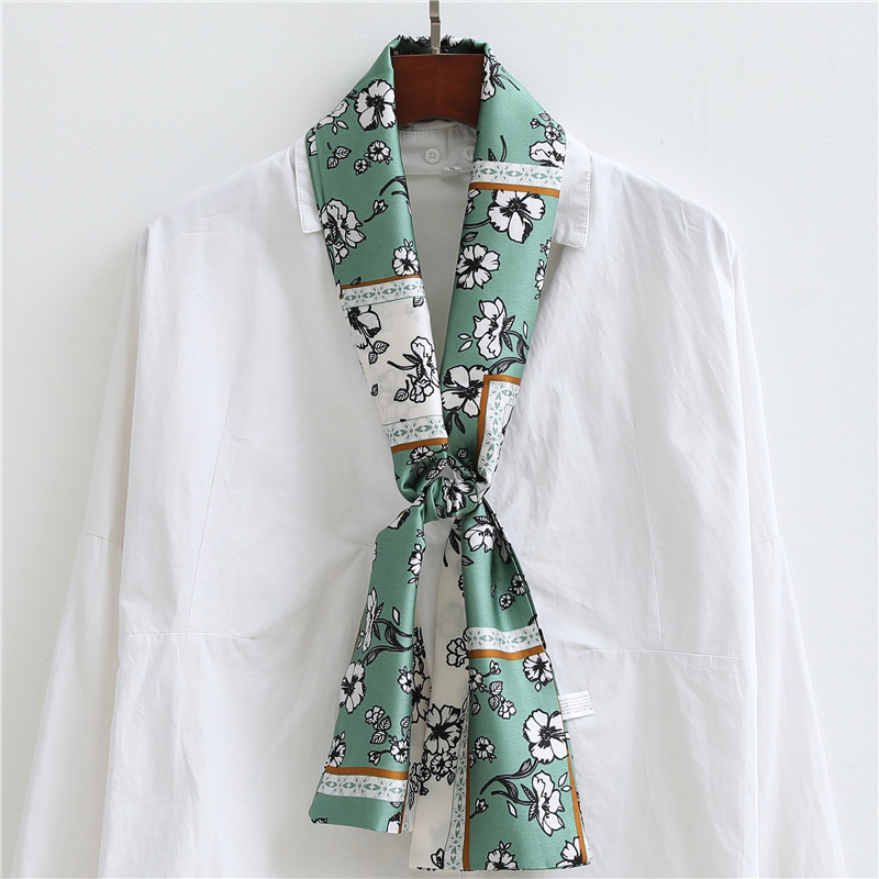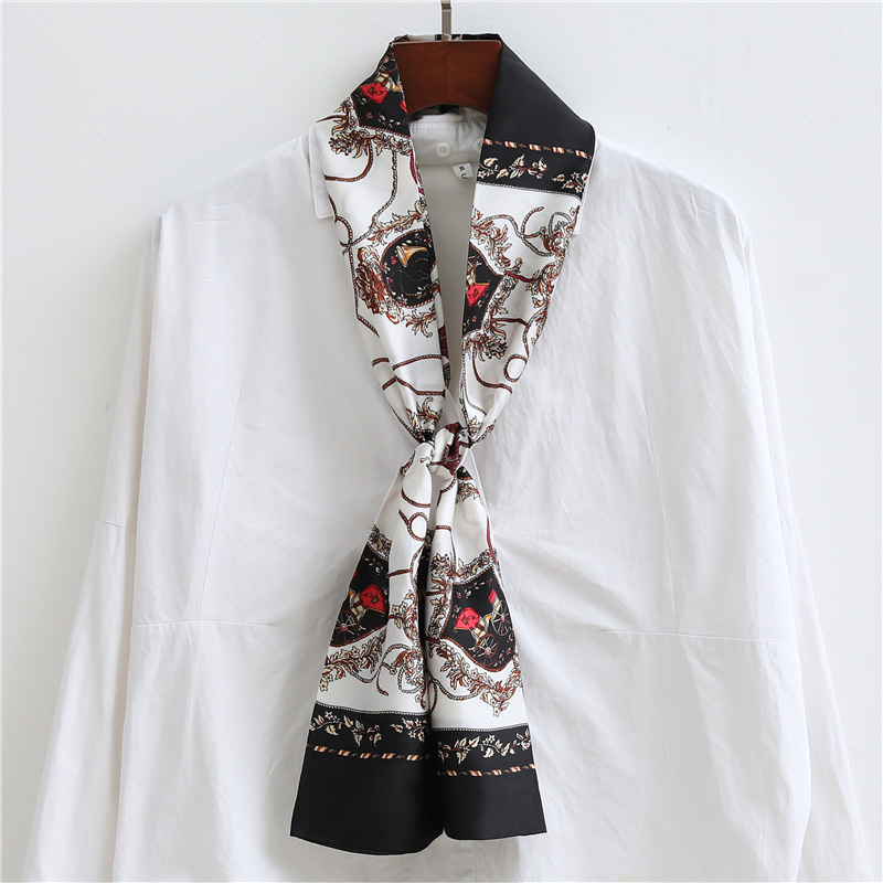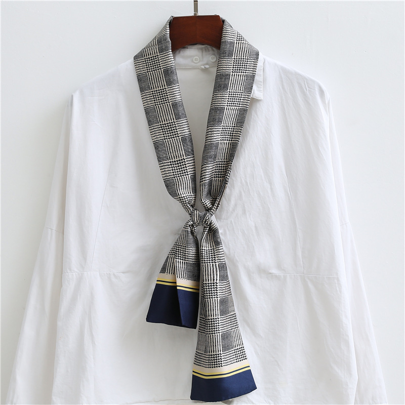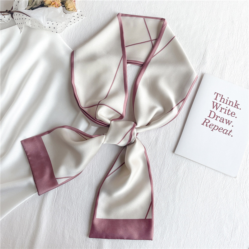 좁은 긴 스카프 양면 실크 스카프 여성용 한국 스타일 유행 모든 일치 장식 스카프 예술적 리본