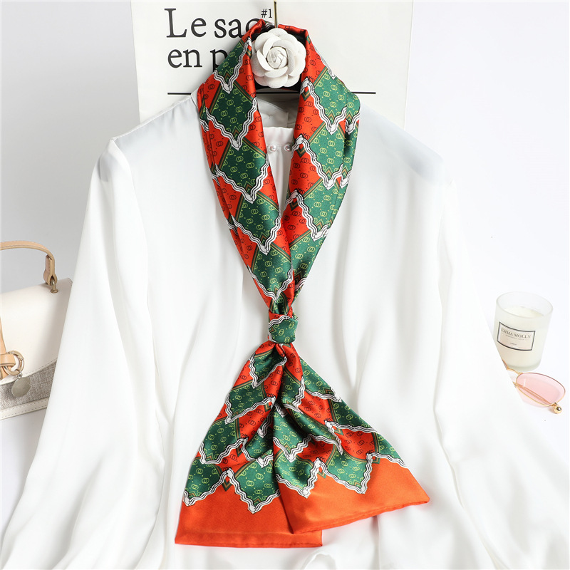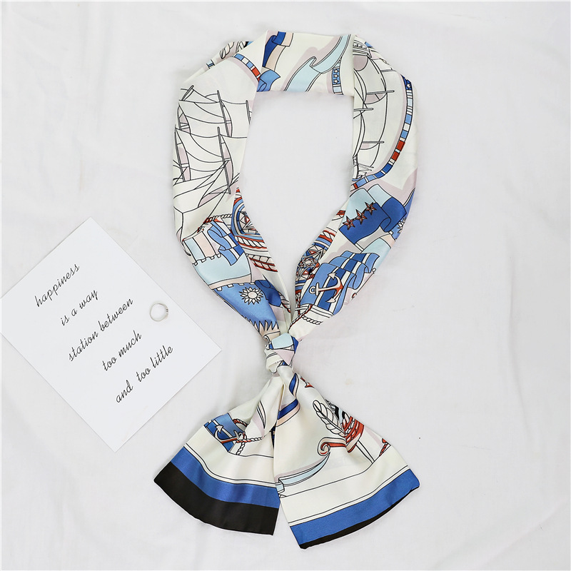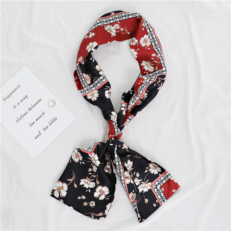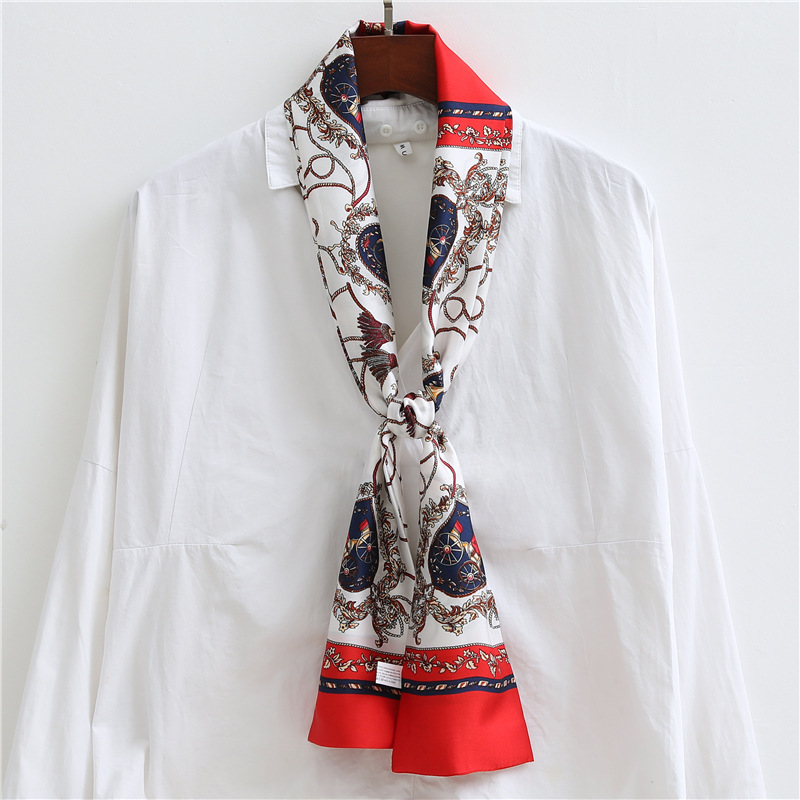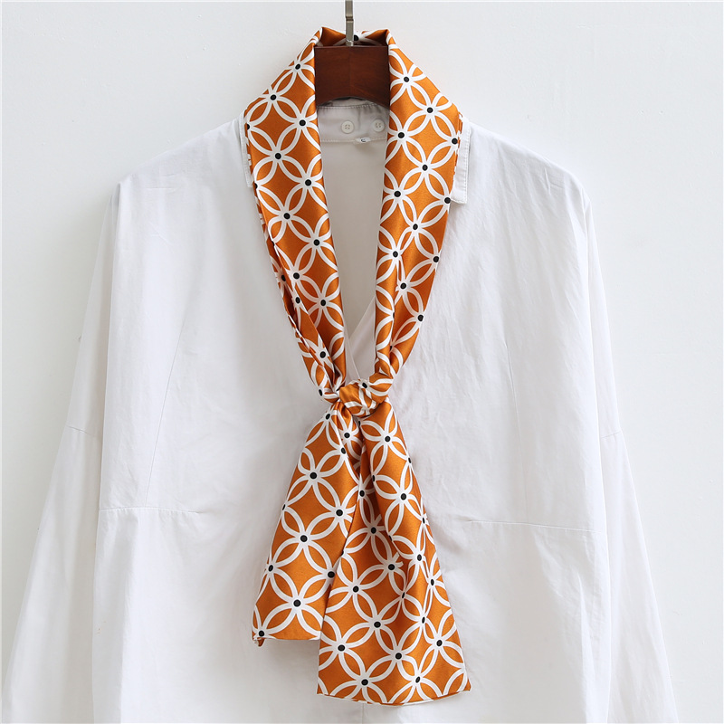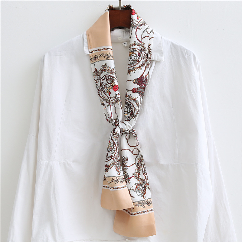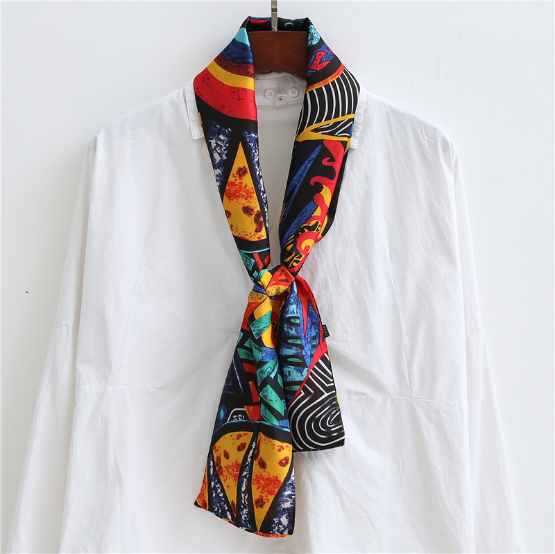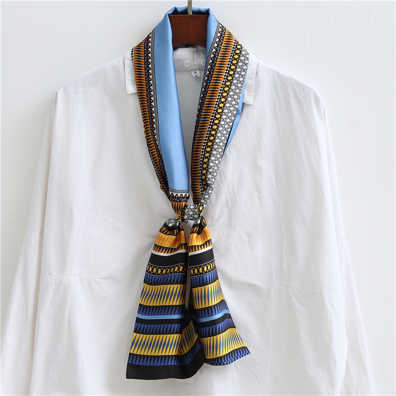 좁은 긴 스카프 양면 실크 스카프 여성용 한국 스타일 유행 모든 일치 장식 스카프 예술적 리본