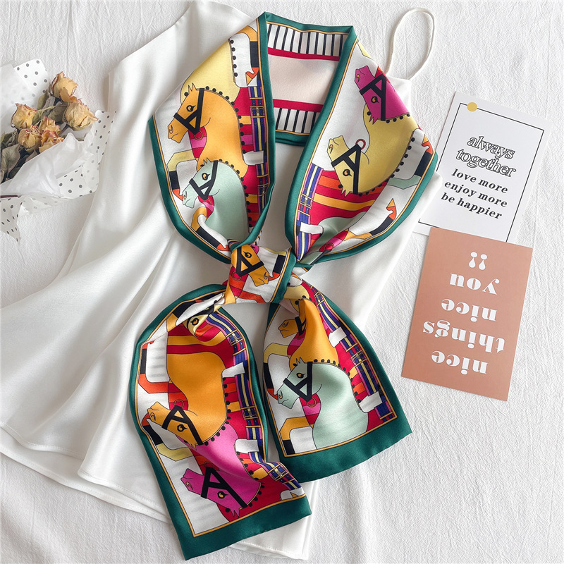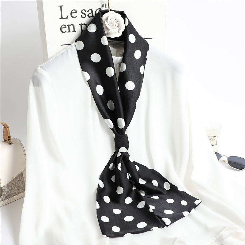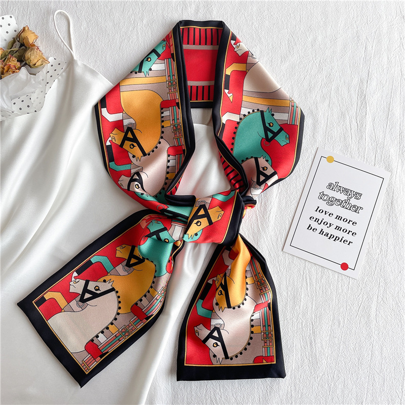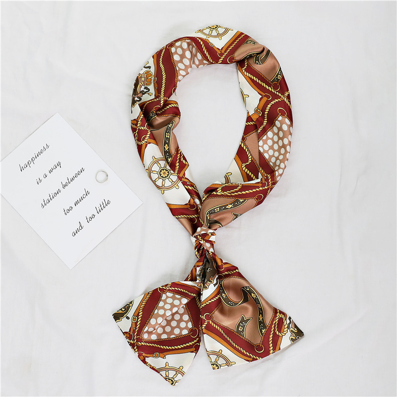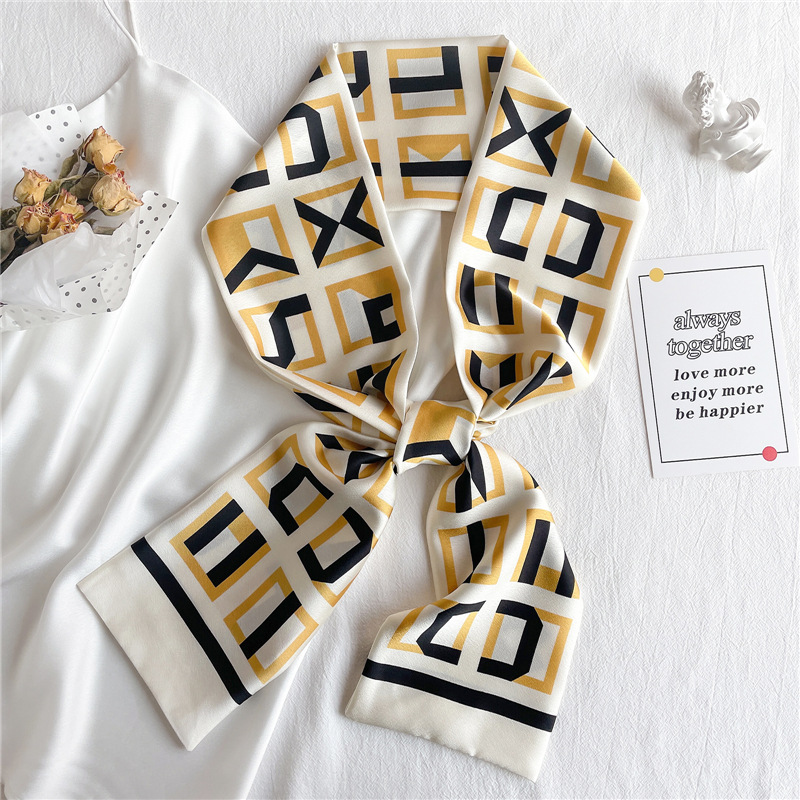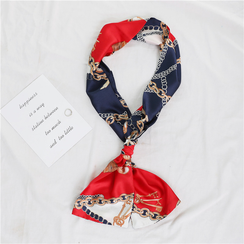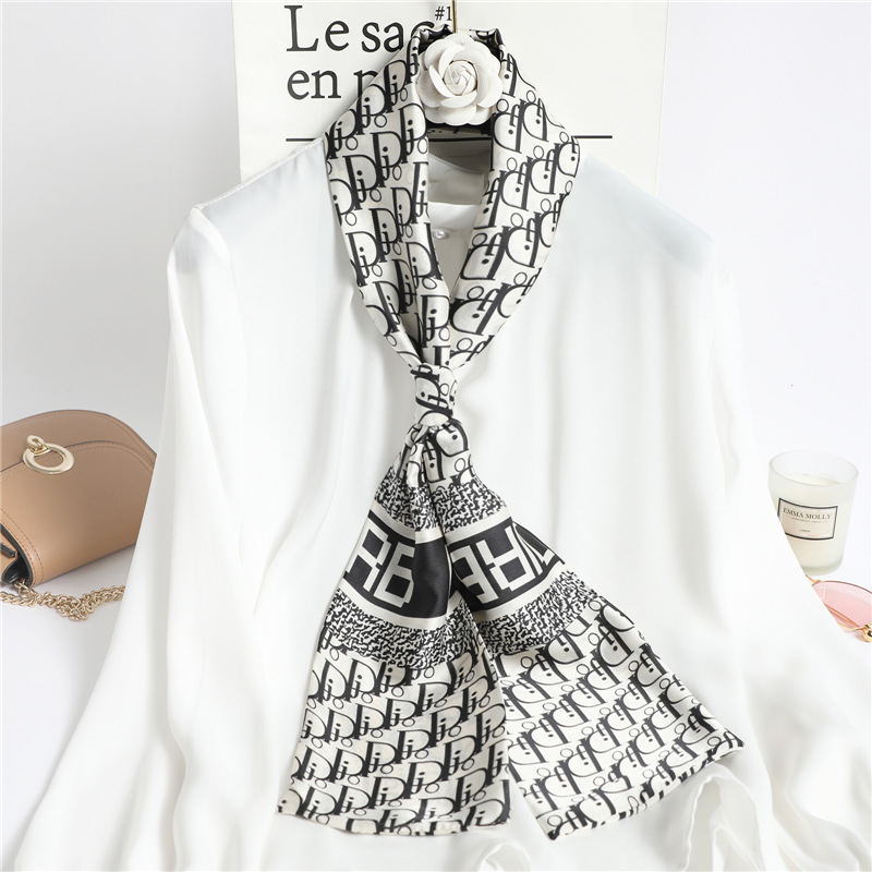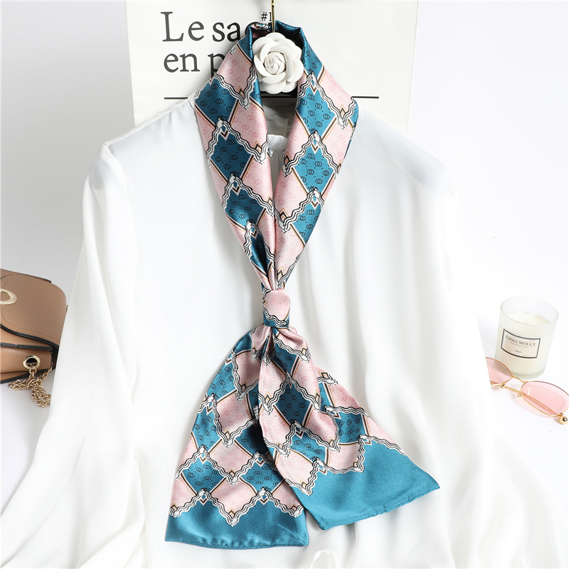 좁은 긴 스카프 양면 실크 스카프 여성용 한국 스타일 유행 모든 일치 장식 스카프 예술적 리본