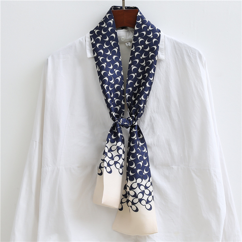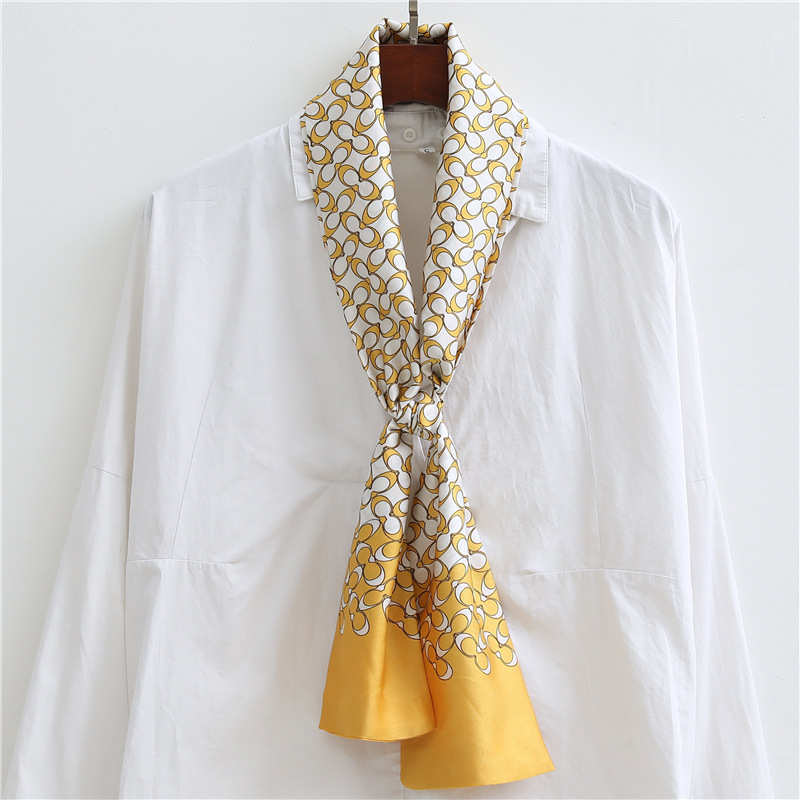 좁은 긴 스카프 양면 실크 스카프 여성용 한국 스타일 유행 모든 일치 장식 스카프 예술적 리본스토어 가기