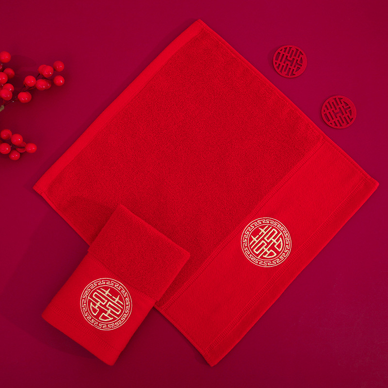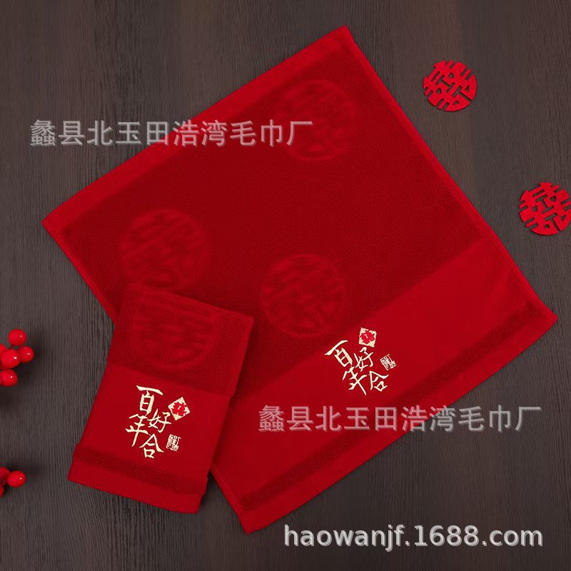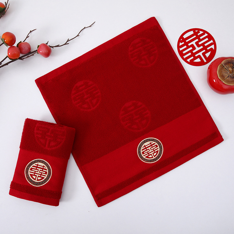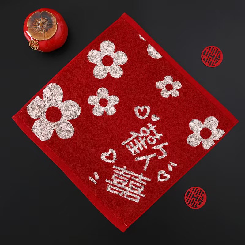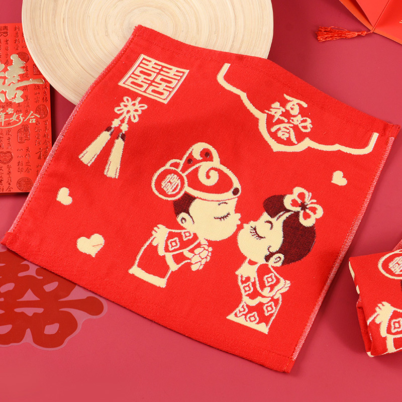빨간색 결혼식 6겹 거즈 면 사각 수건 35*35 결혼 답례품 대나무 섬유 사각 수건 기념품 얼굴 수건스토어 가기