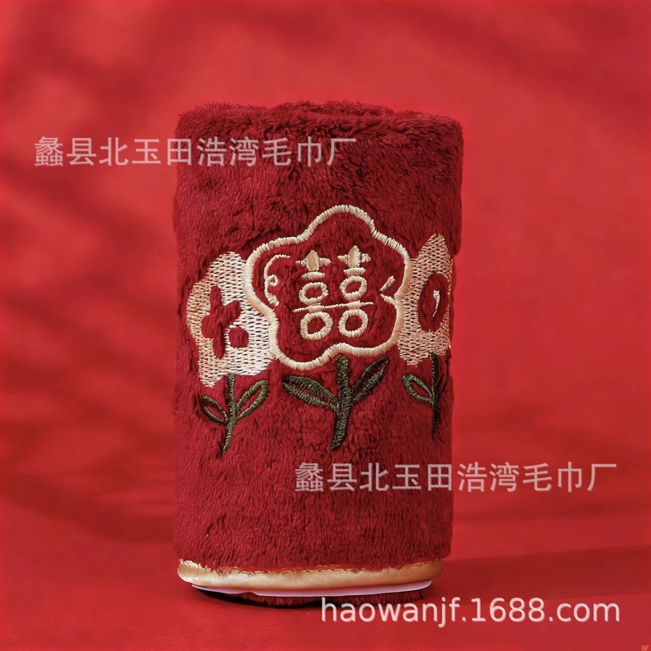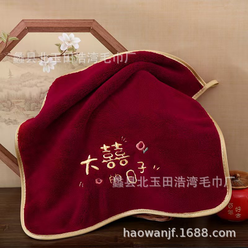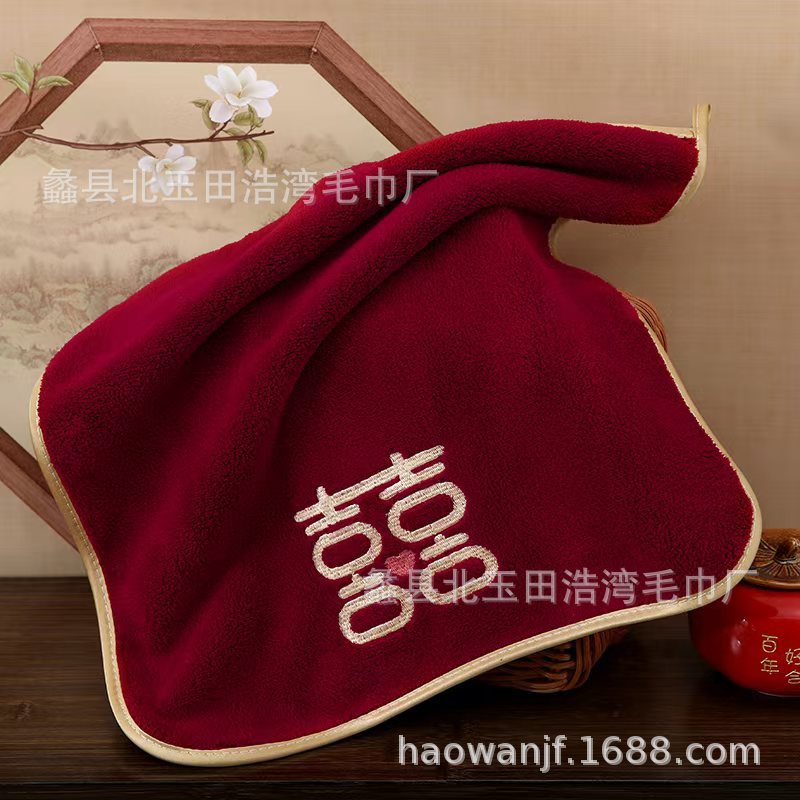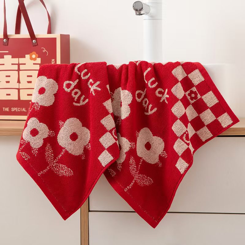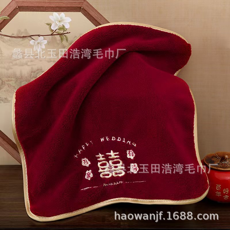 빨간색 결혼식 6겹 거즈 면 사각 수건 35*35 결혼 답례품 대나무 섬유 사각 수건 기념품 얼굴 수건스토어 가기