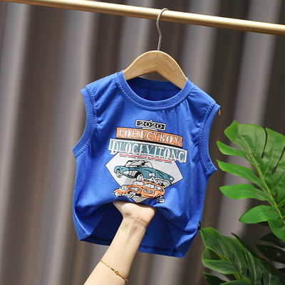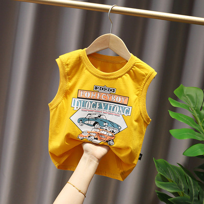 아동복 2023 여름 신상품 아동용 투피스 카 프린트 한국식 남아 민소매 조끼 세트 트렌디