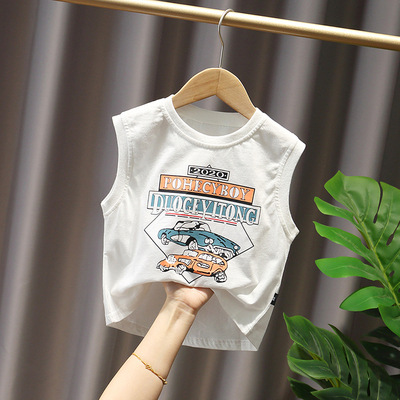 아동복 2023 여름 신상품 아동용 투피스 카 프린트 한국식 남아 민소매 조끼 세트 트렌디스토어 가기