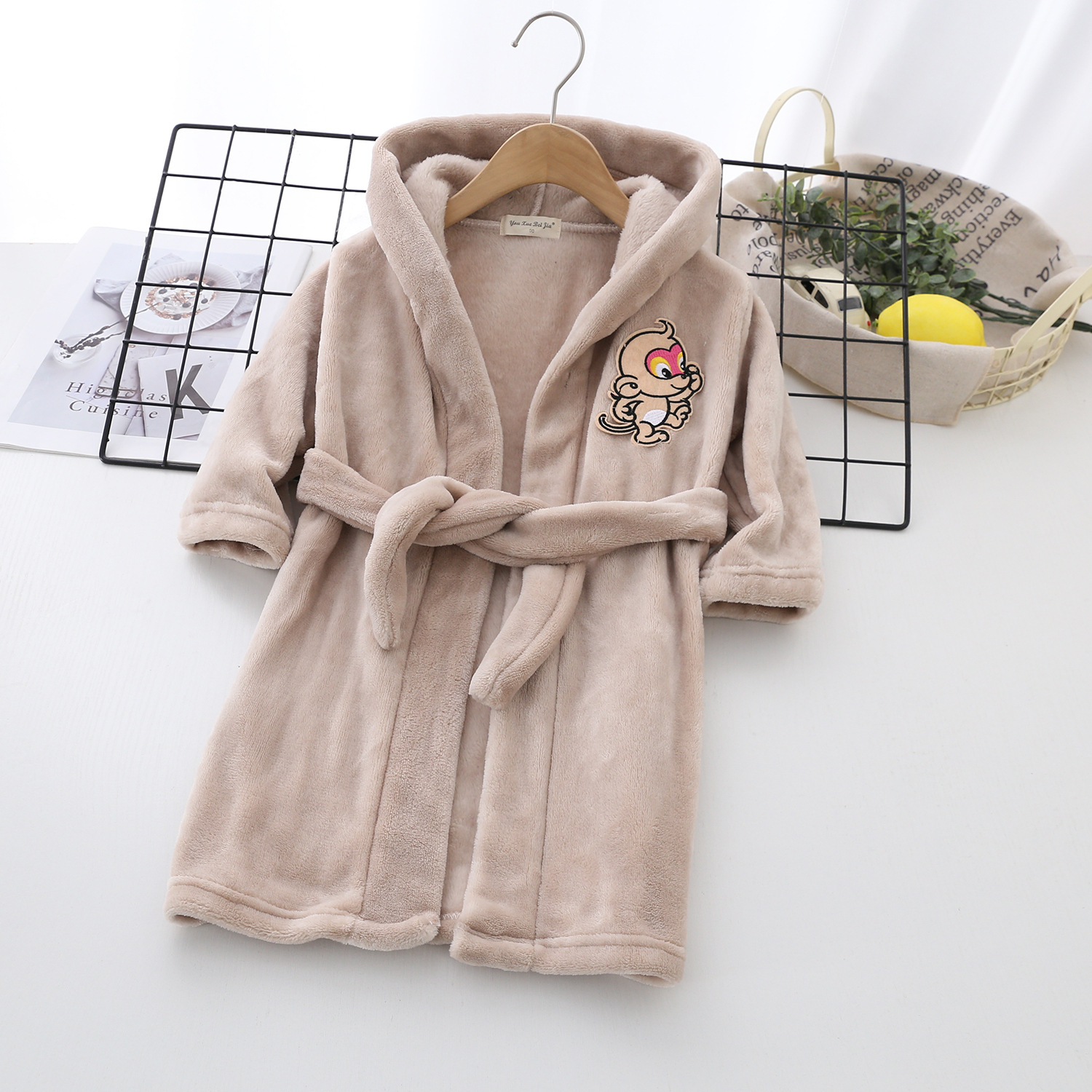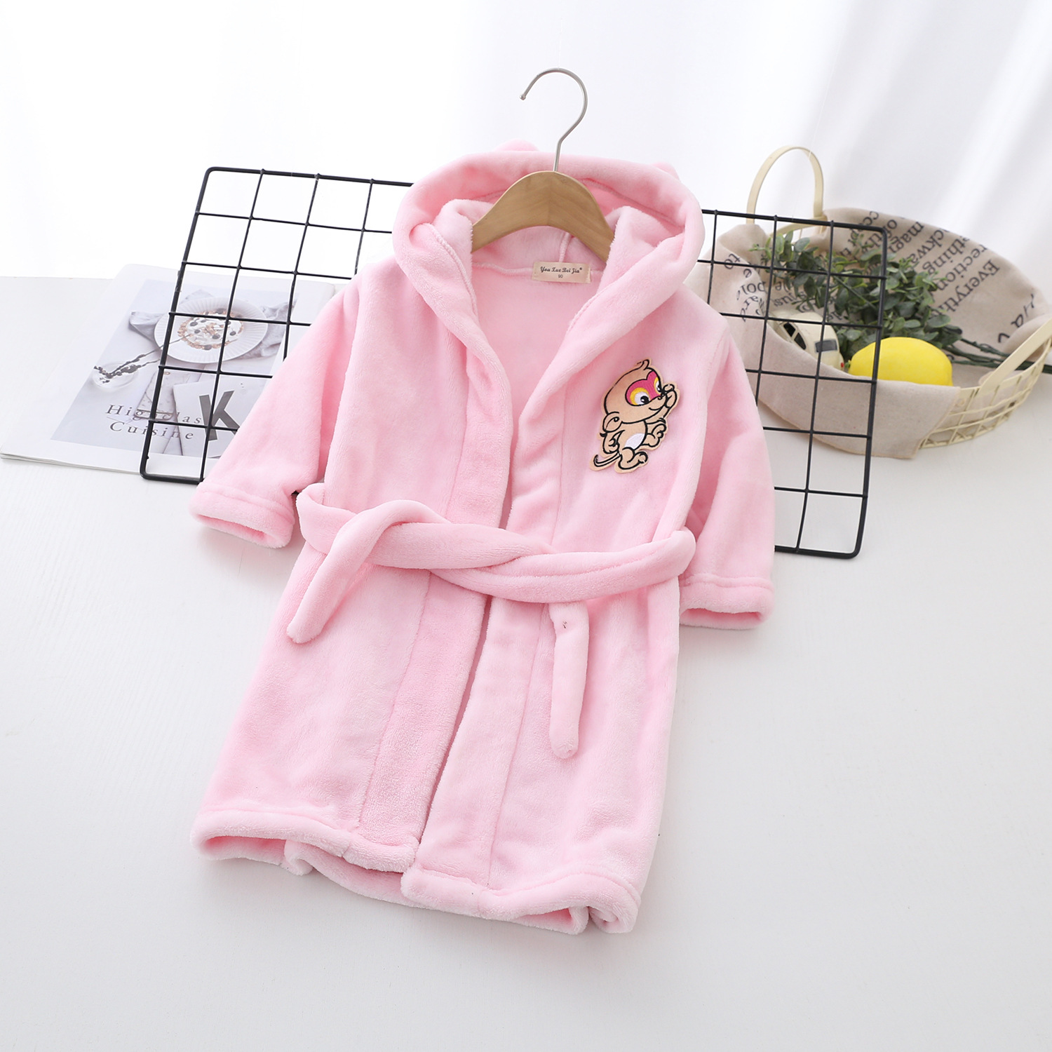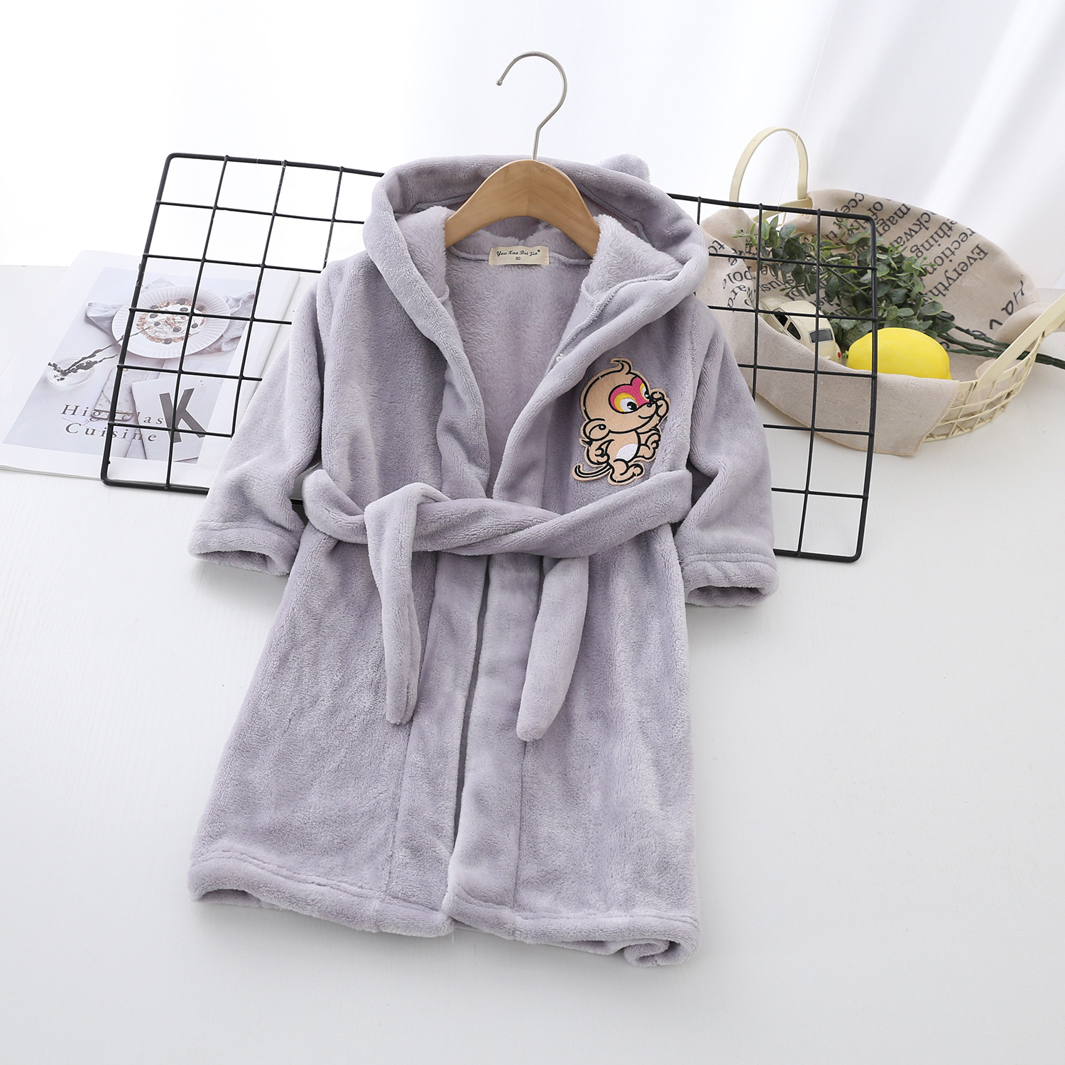 소년과 소녀를위한 2021 어린이 만화 가정 옷 잠옷 j 목욕 가운 가을과 겨울 플란넬 소녀 후드 레이스 업 잠옷스토어 가기