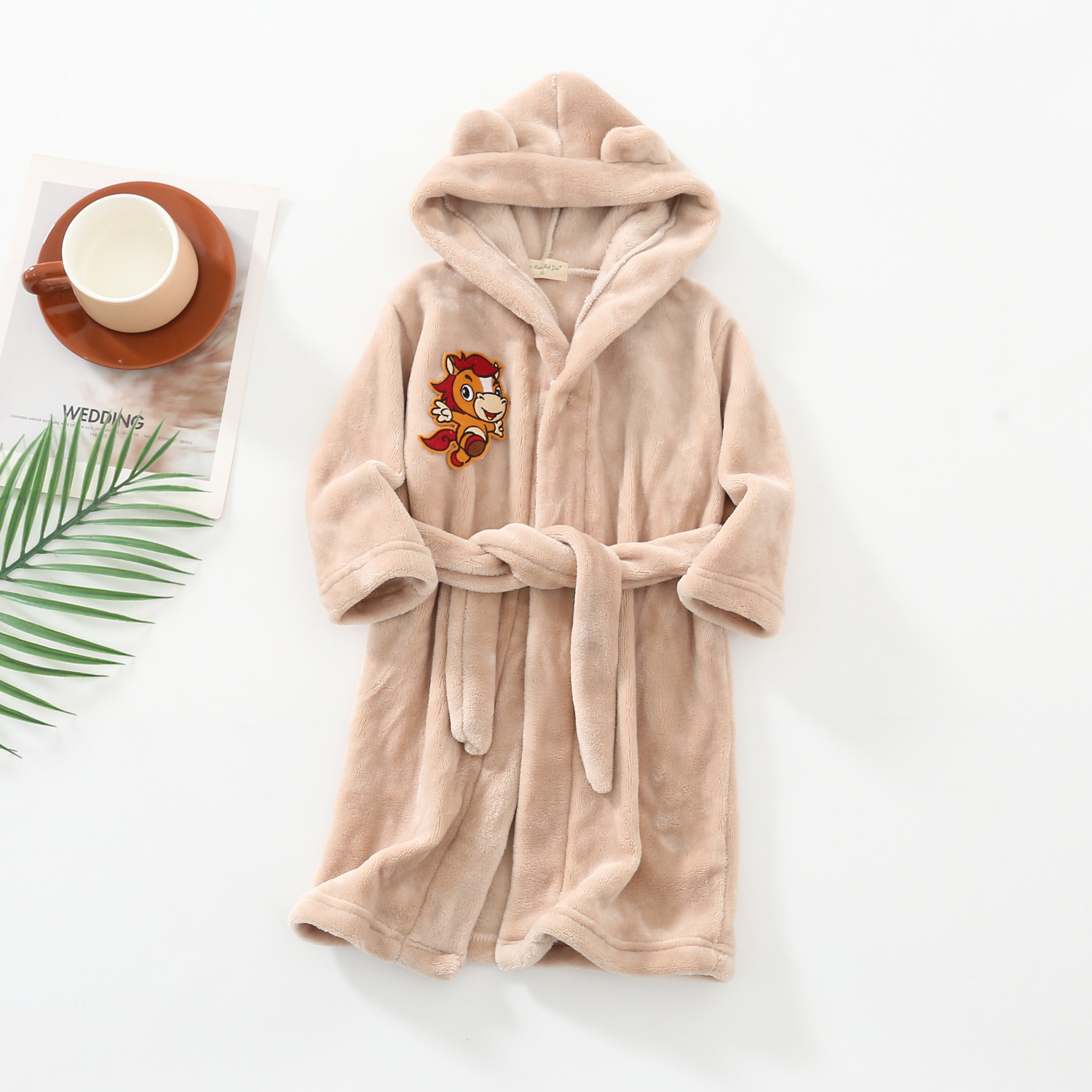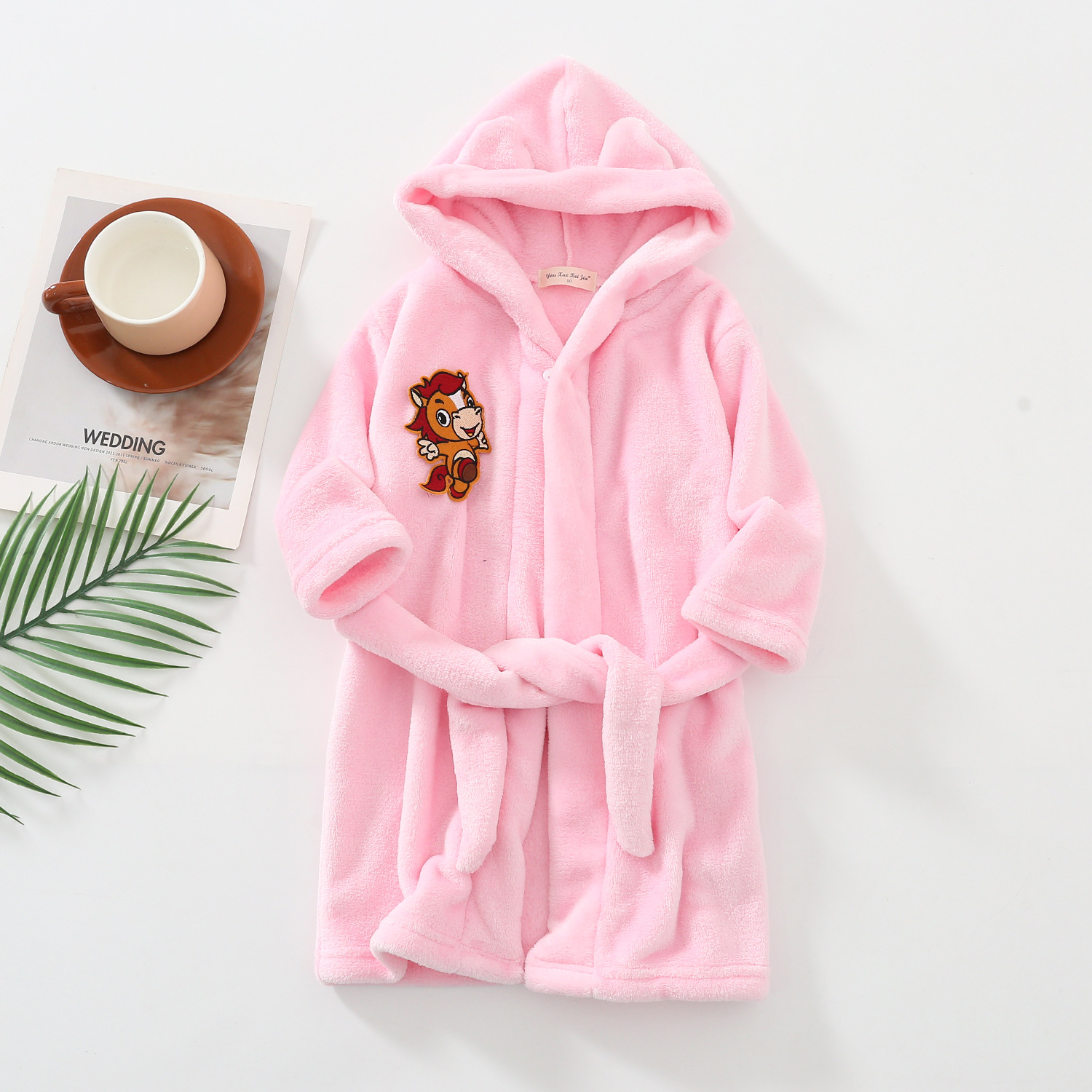 소년과 소녀를위한 2021 어린이 만화 가정 옷 잠옷 j 목욕 가운 가을과 겨울 플란넬 소녀 후드 레이스 업 잠옷