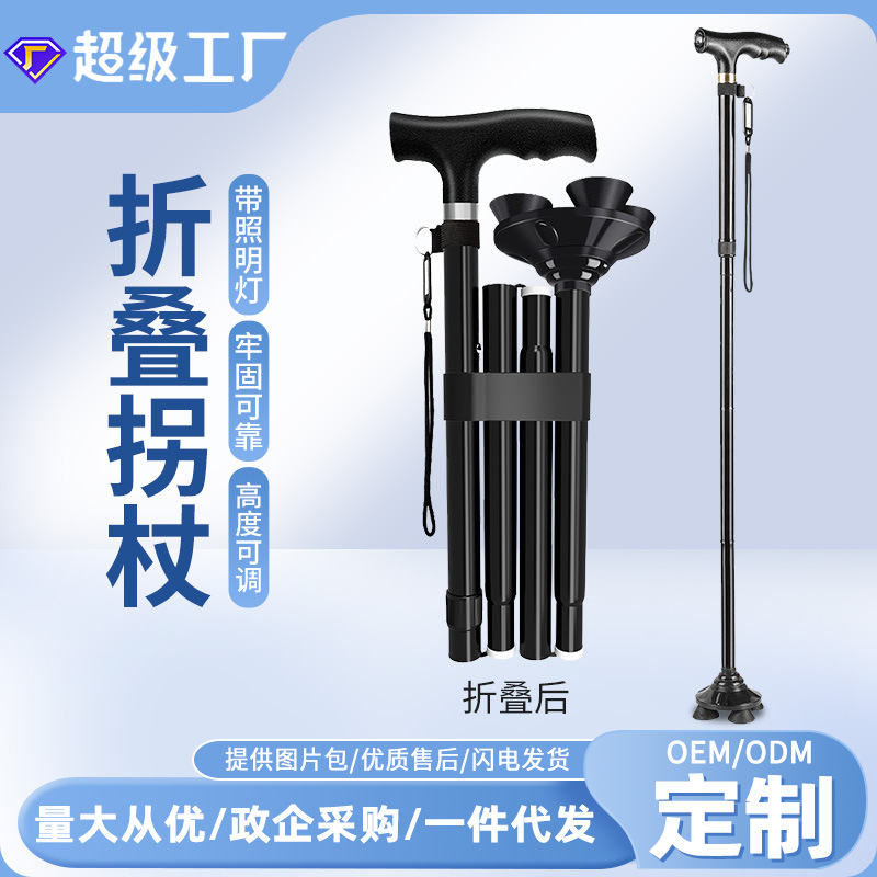 노인을 위한 국경 간 미끄럼 방지 알루미늄 합금 목발, 접이식 스마트 지팡이, 4족 목발, 휴대용 목발스토어 가기
