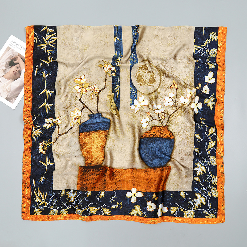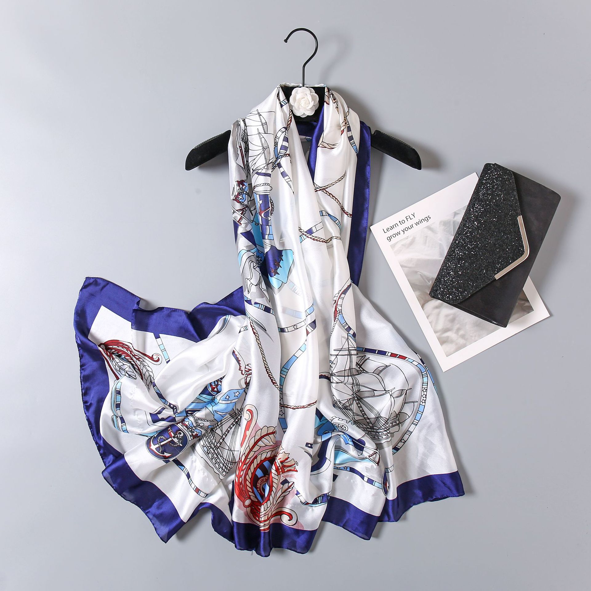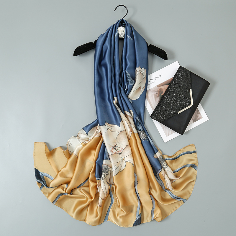 가오헤 봄과 여름 새로운 네잎 클로버 꽃 여성용 자외선 차단제 실크 스카프 롱 숄 해변 휴일 차양 스카프