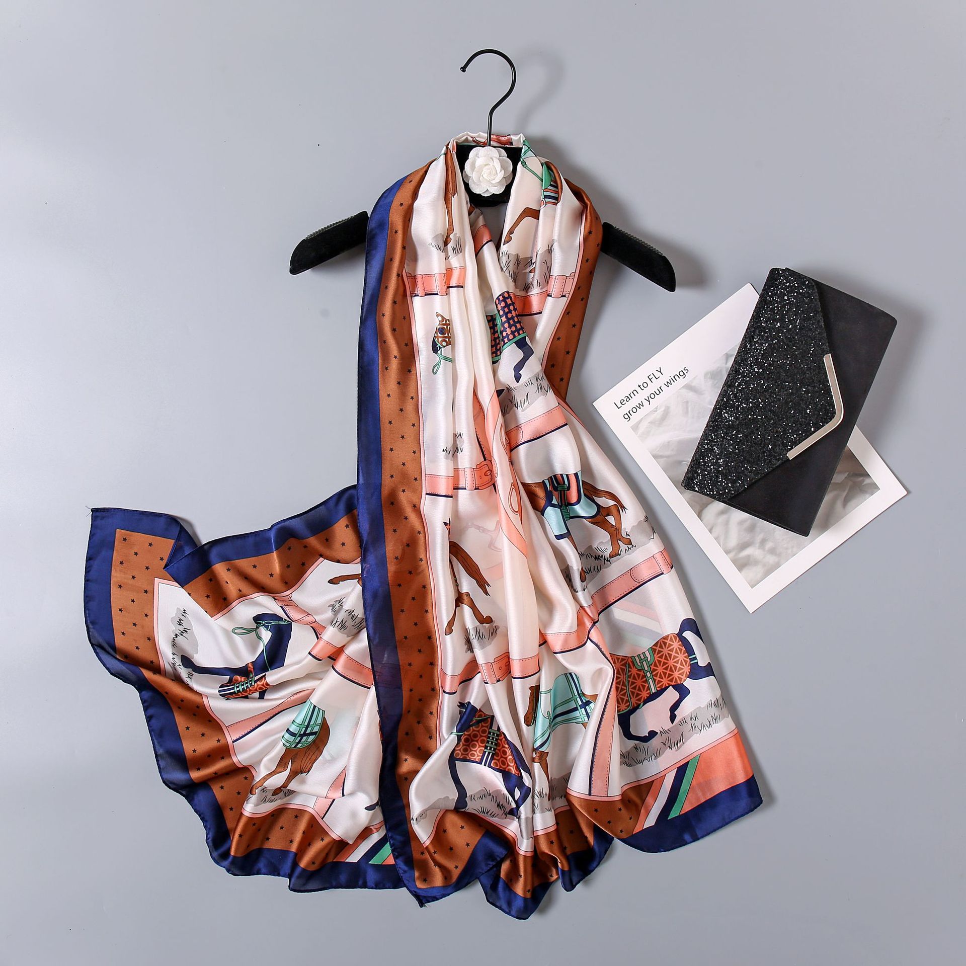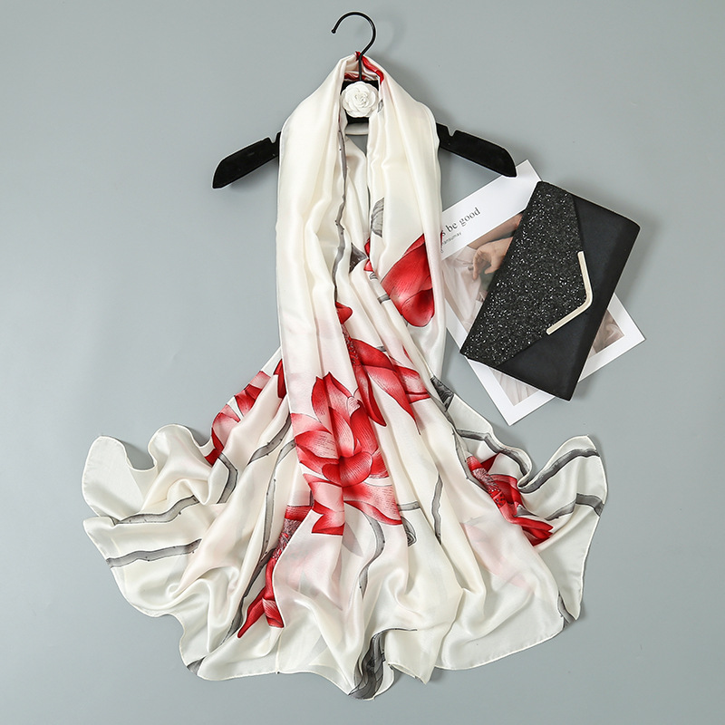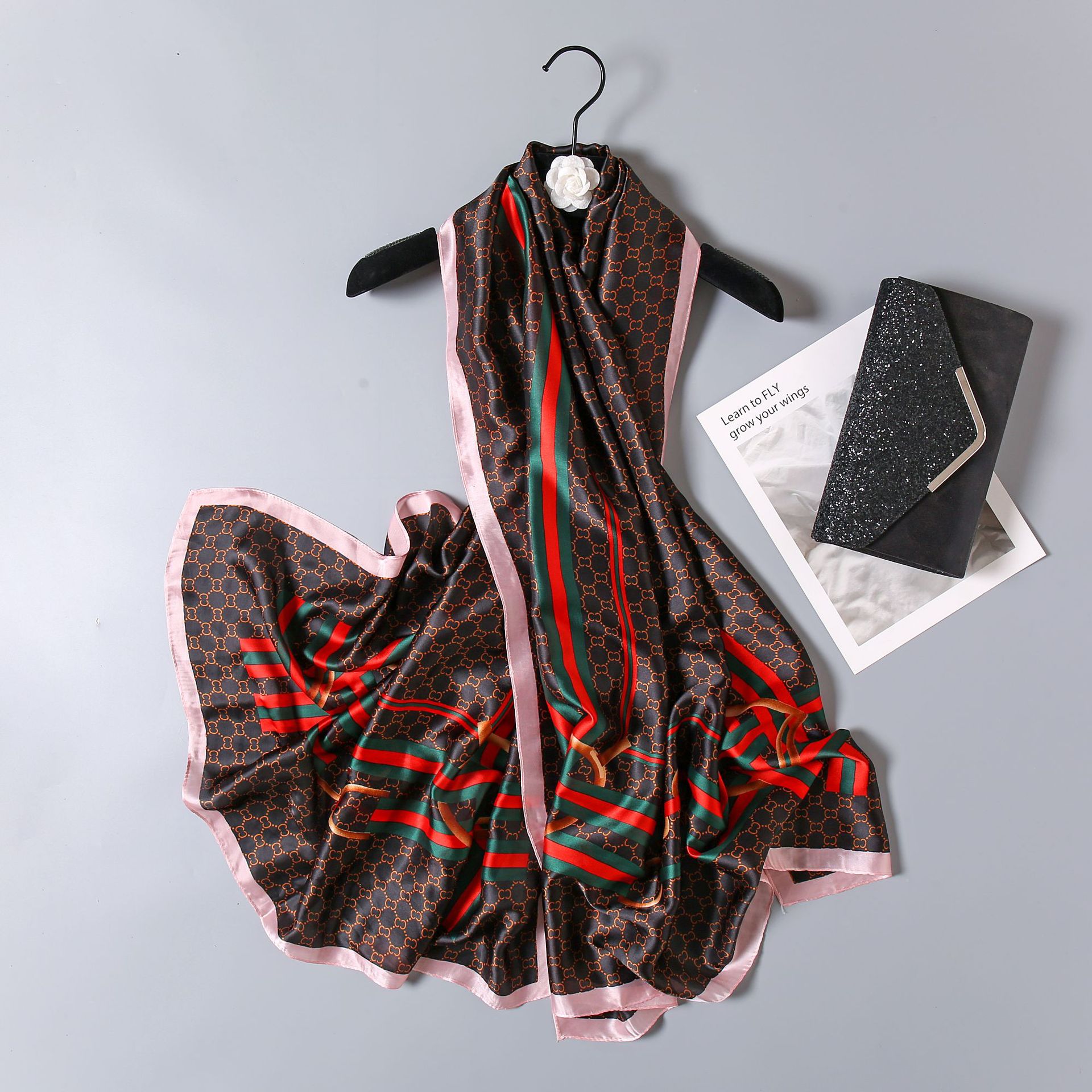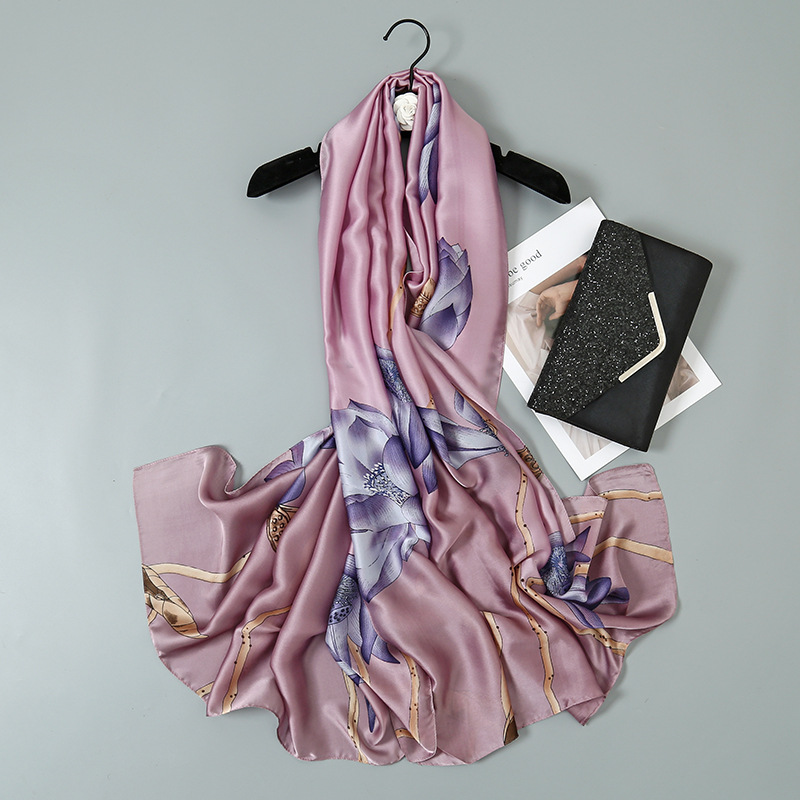 가오헤 봄과 여름 새로운 네잎 클로버 꽃 여성용 자외선 차단제 실크 스카프 롱 숄 해변 휴일 차양 스카프스토어 가기