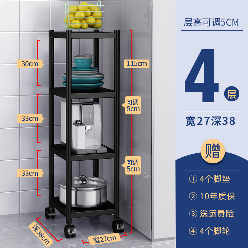 스테인레스 스틸 주방 틈새 수납 랙 플로어 스탠딩 다층 초협소 냉장고 틈새 수납 사이드 휠 이동식 냄비 랙스토어 가기