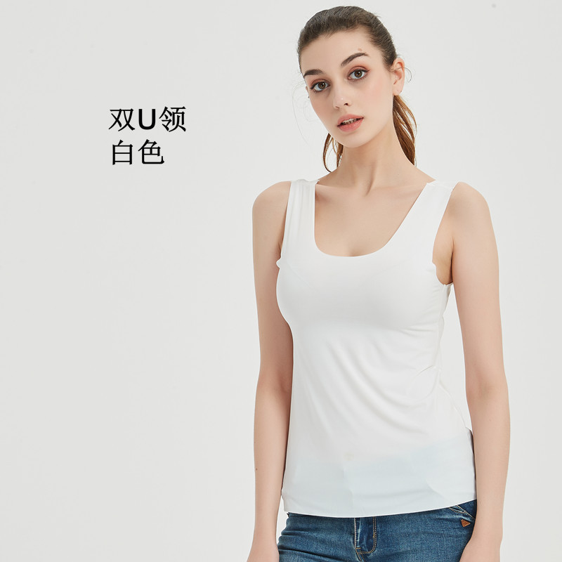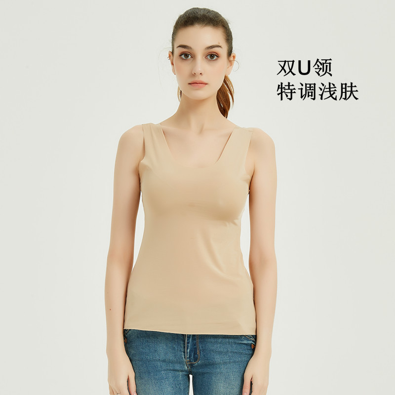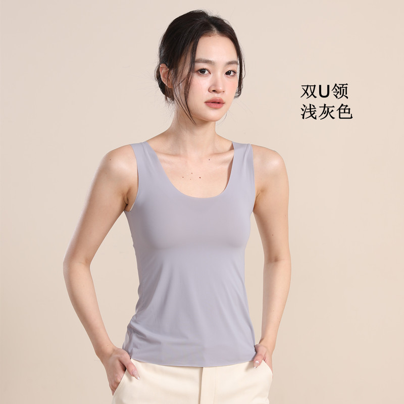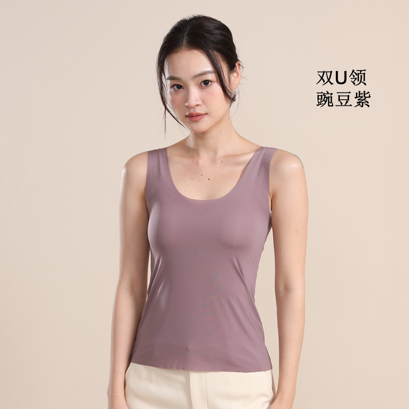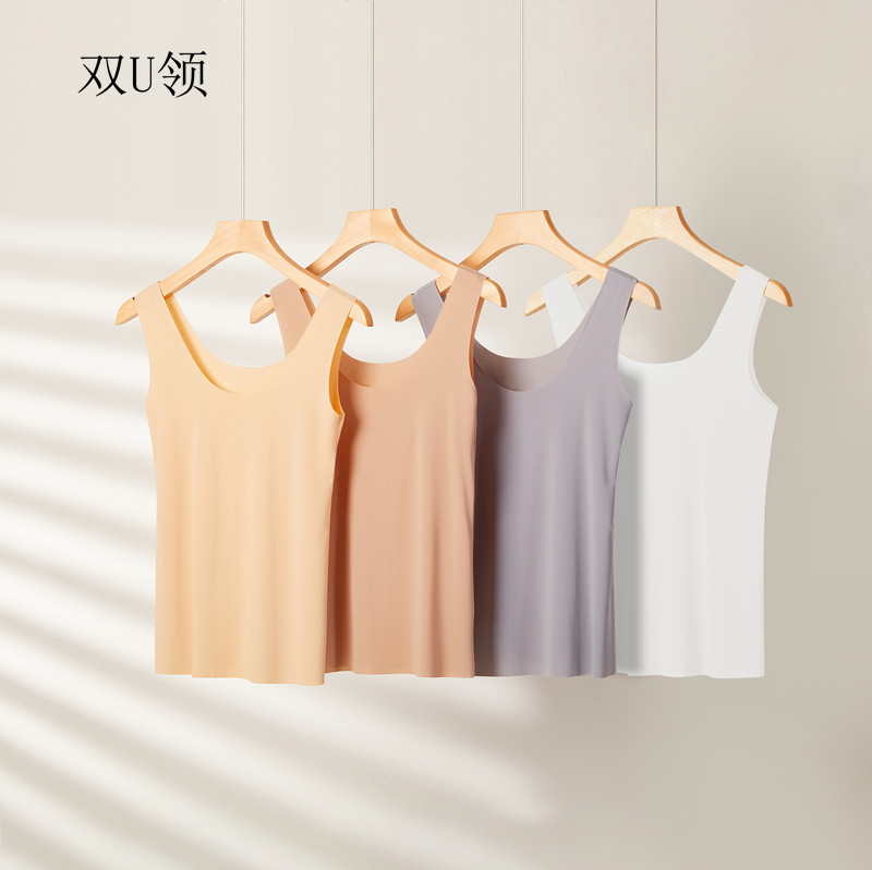 아이스 실크 무봉제 탱크탑 여름 시원한 아이스 실크 끈나시 큰 사이즈 라운드넥 초박형 부드러운 무봉제 노출방지 여성용스토어 가기