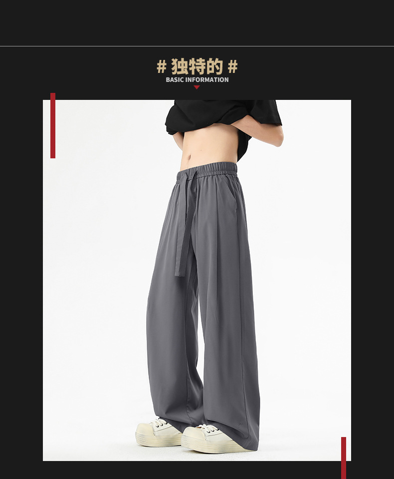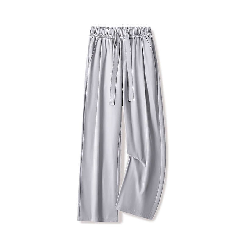 ACU 남성복 | 드레이프 아이스 실크 얇은 바지 남성 여름 속건성 루즈 스트레이트 통기성 와이드 레그 캐주얼 바지