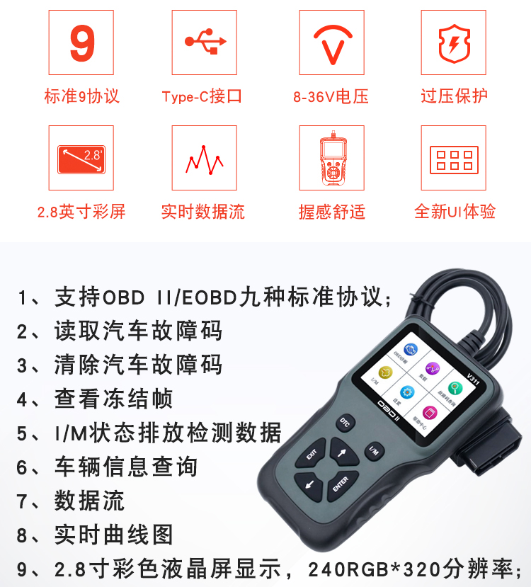 V311 자동차 결함 탐지기 진단 기기 obd 탐지기 구동 컴퓨터 디코더 디코더 리무버스토어 가기